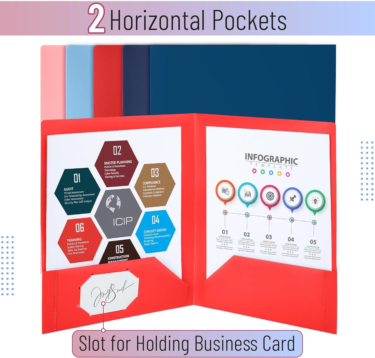 • Mr. Pen plastic folders with pockets come in a convenient 5-pack, featuring vibrant, eye-catching colors that make organizing your documents simple and stylish.