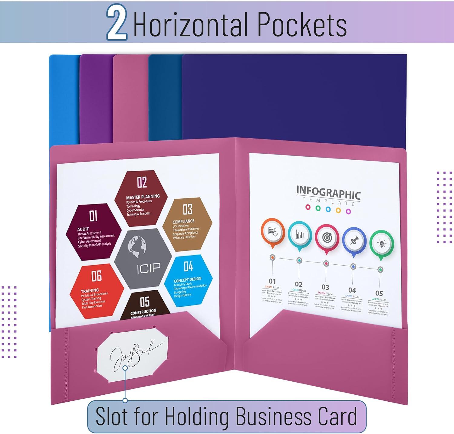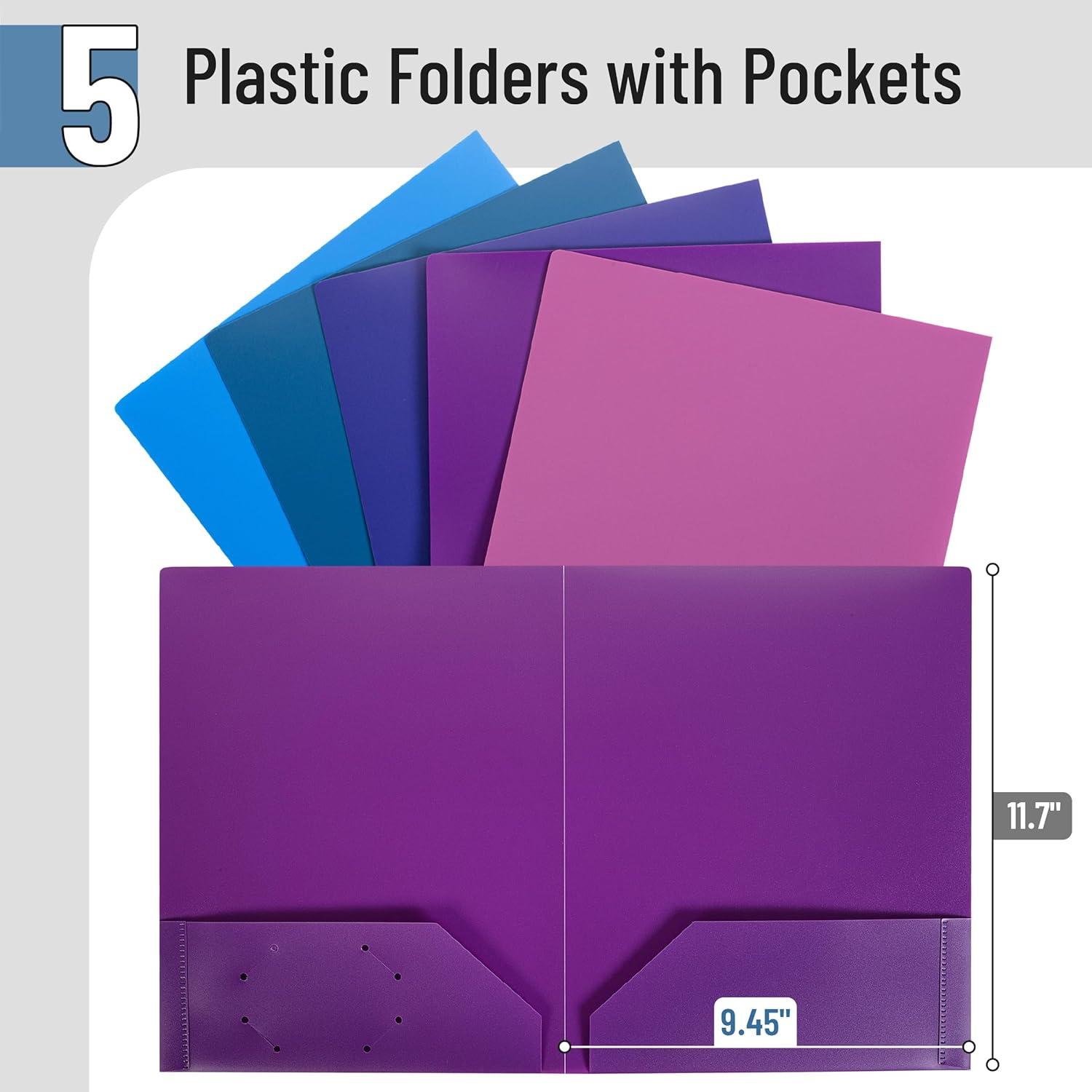• Mr. Pen plastic folders with pockets come in a convenient 5-pack, featuring vibrant, eye-catching colors that make organizing your documents simple and stylish.