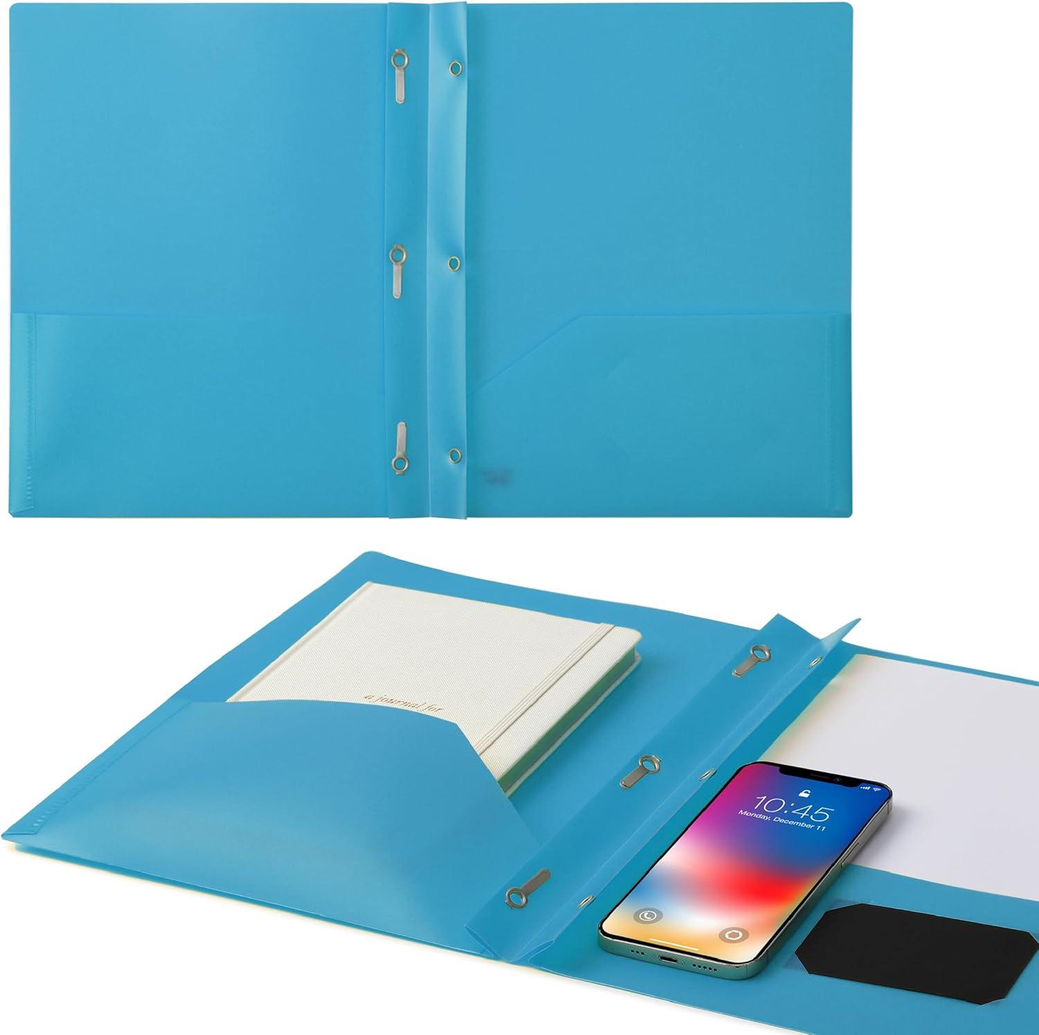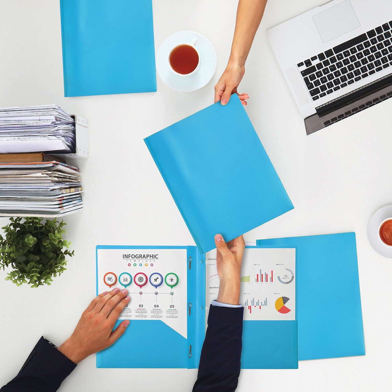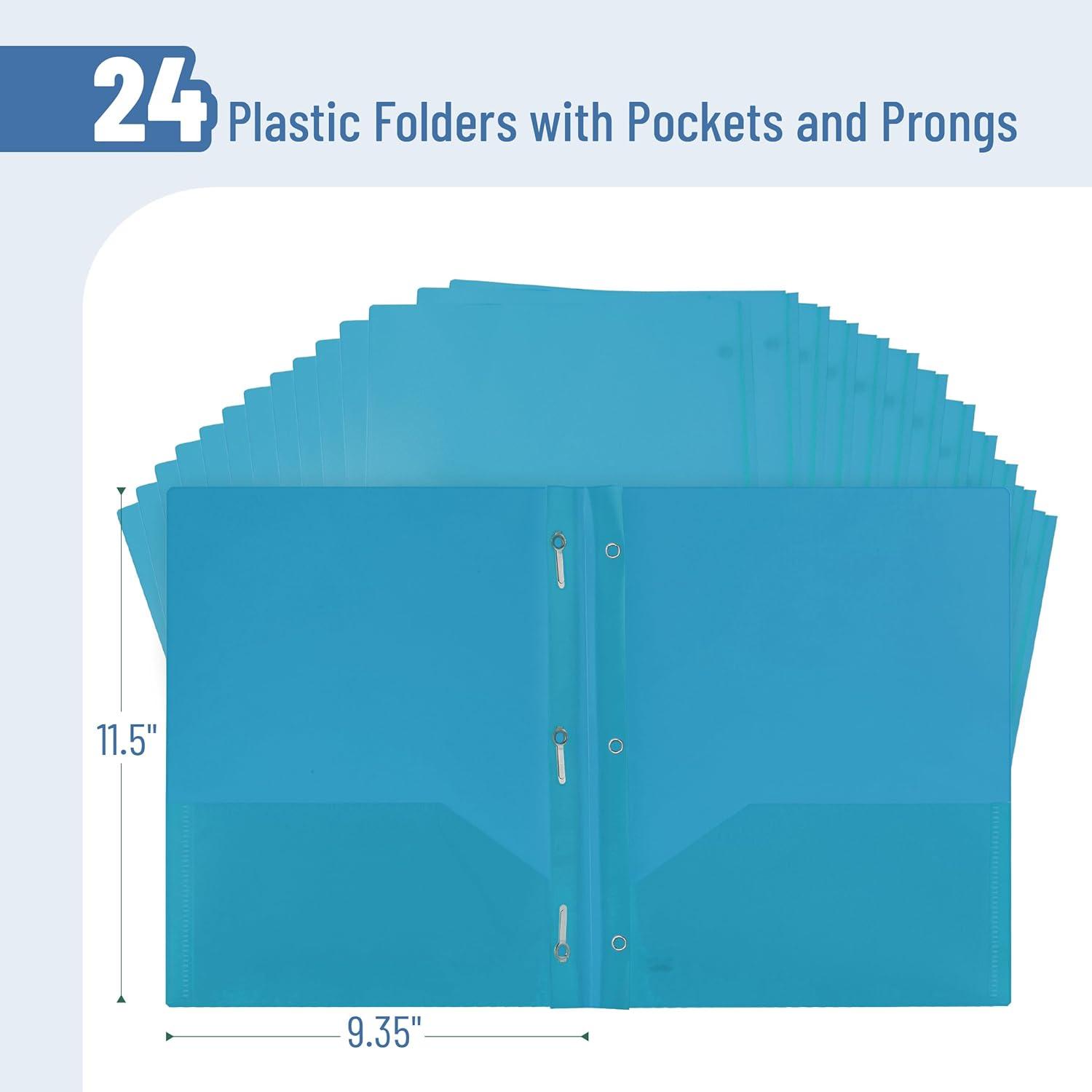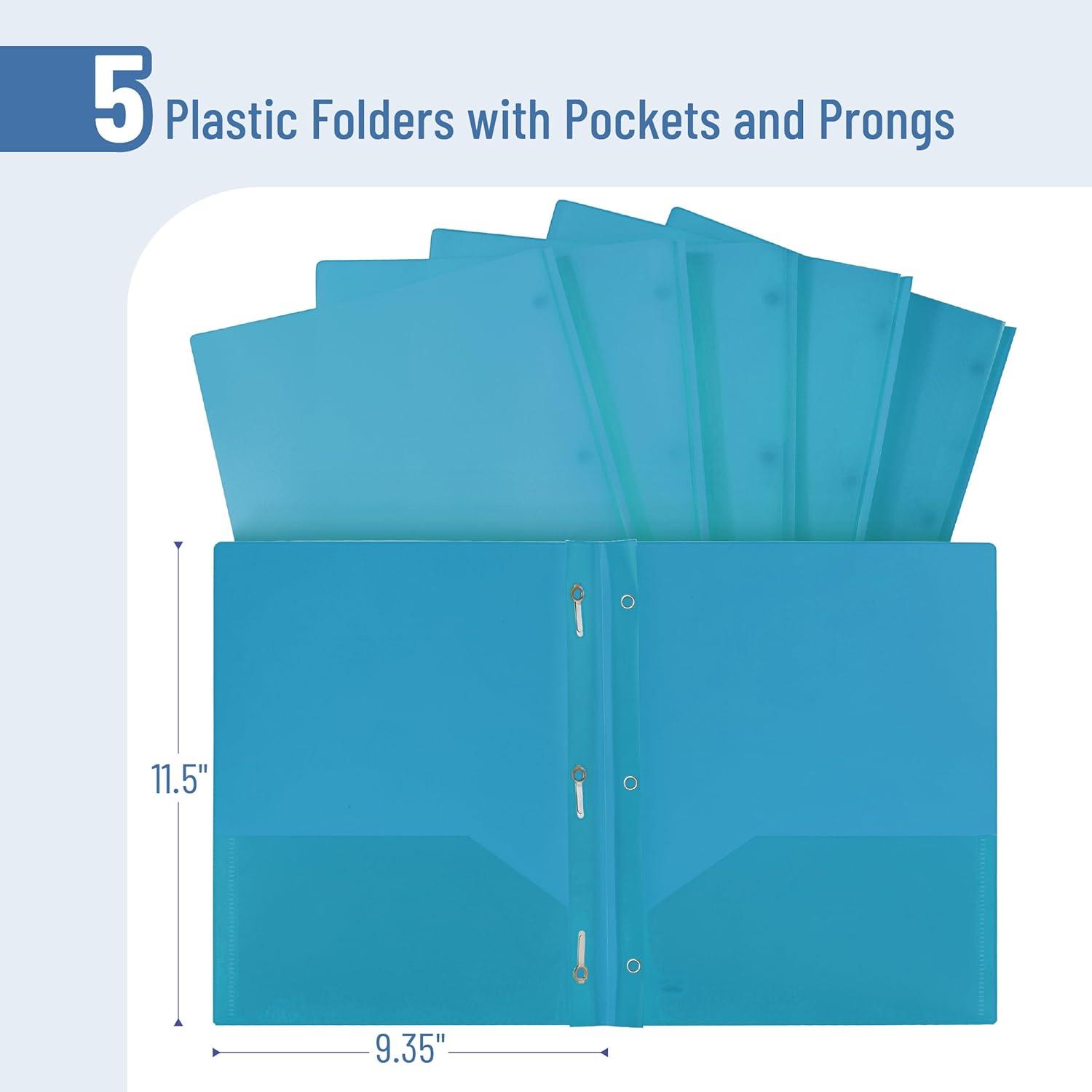Mr. Pen- Plastic Folders with Pockets and Prongs, 15 Pack, Letter Size, Flexible Plastic Folders with Prongs(Blue)
