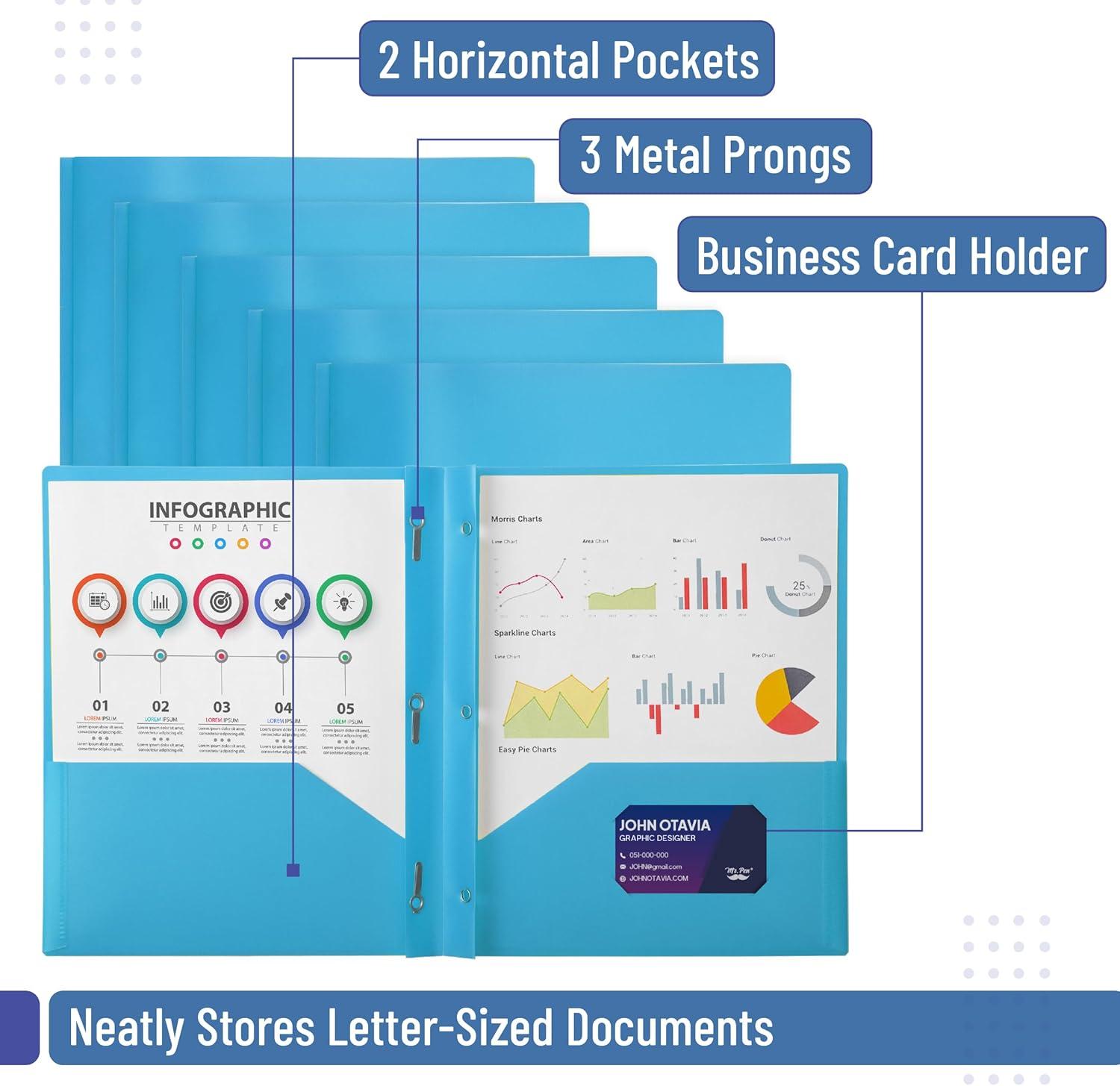 Mr. Pen- Plastic Folders with Pockets and Prongs, 15 Pack, Letter Size, Flexible Plastic Folders with Prongs(Blue + Organizational Sheets)