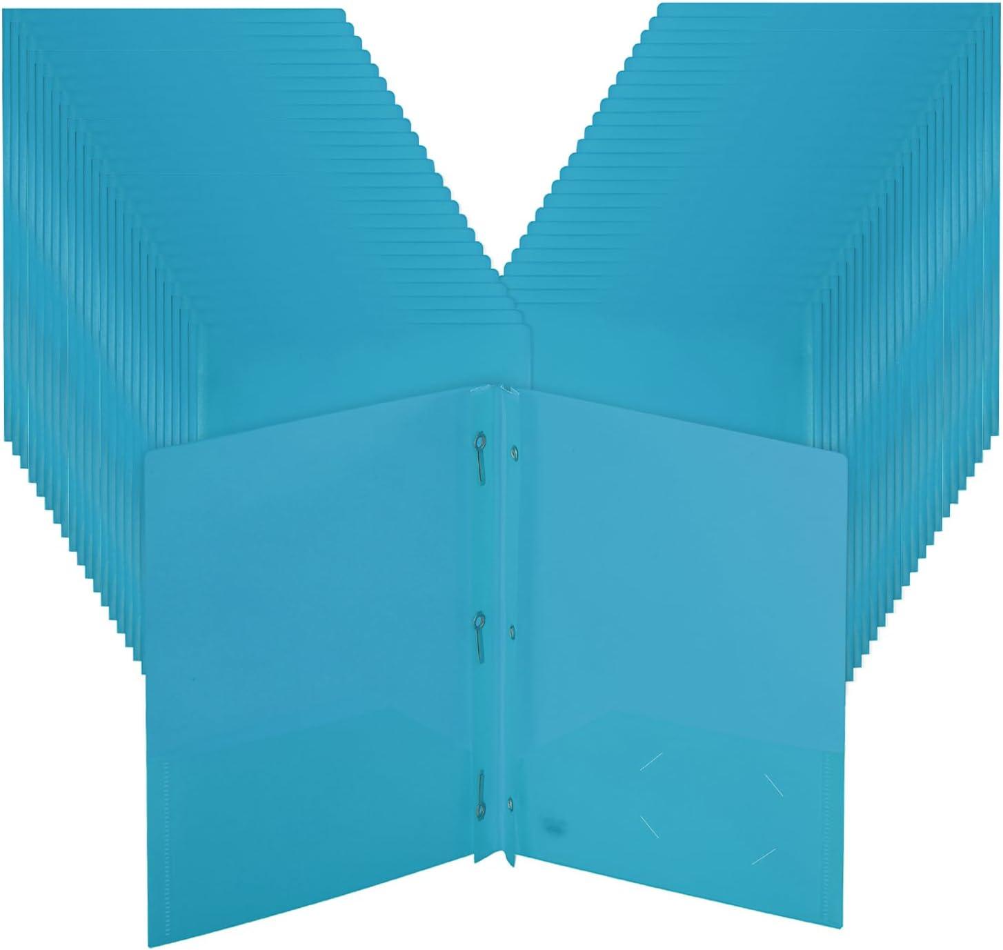 Each folder is sized for standard letter-size paper and includes two interior pockets and three sturdy prongs for securing loose and punched sheets.