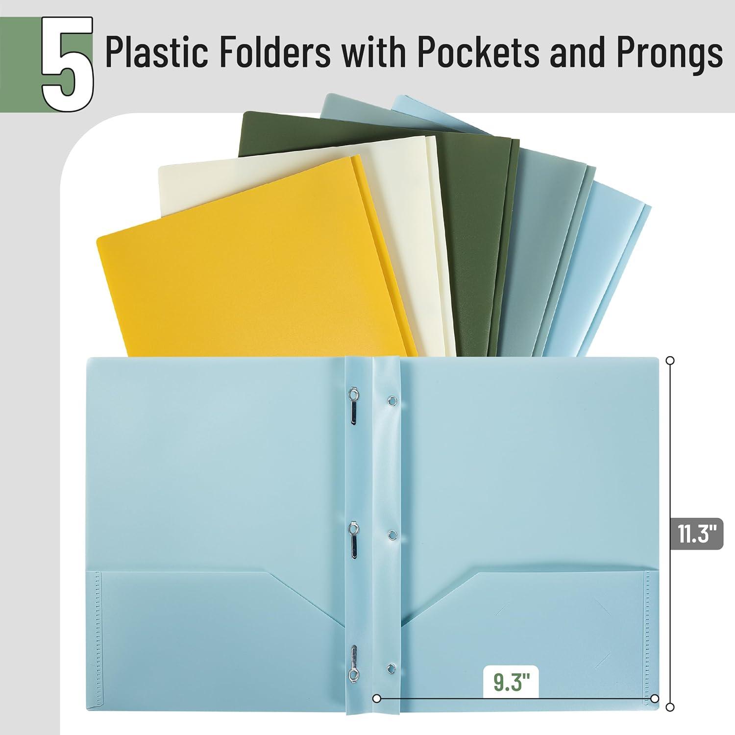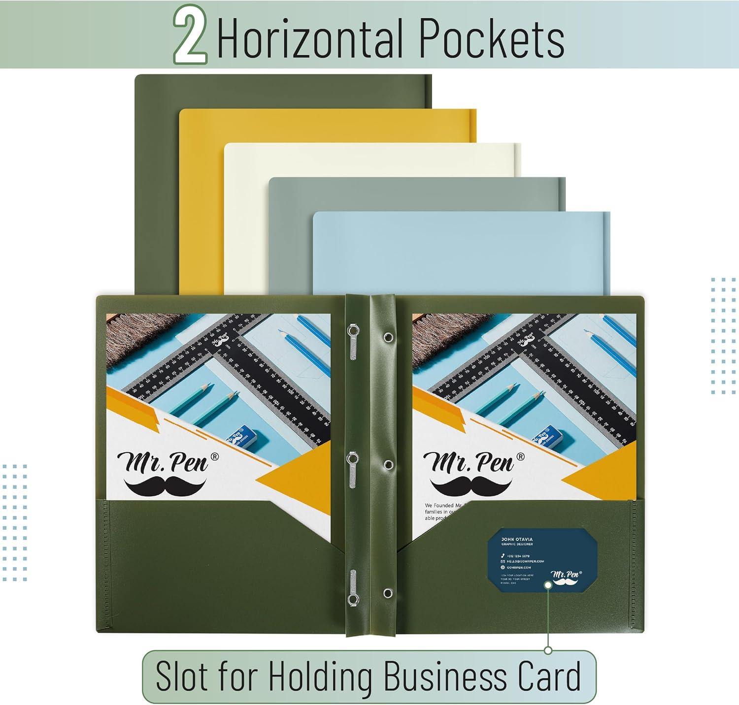 Mr. Pen- Plastic Folders with Pockets and Prongs, 15 Pack, Letter Size, Flexible Plastic Folders with Prongs(Earthlight Colors)