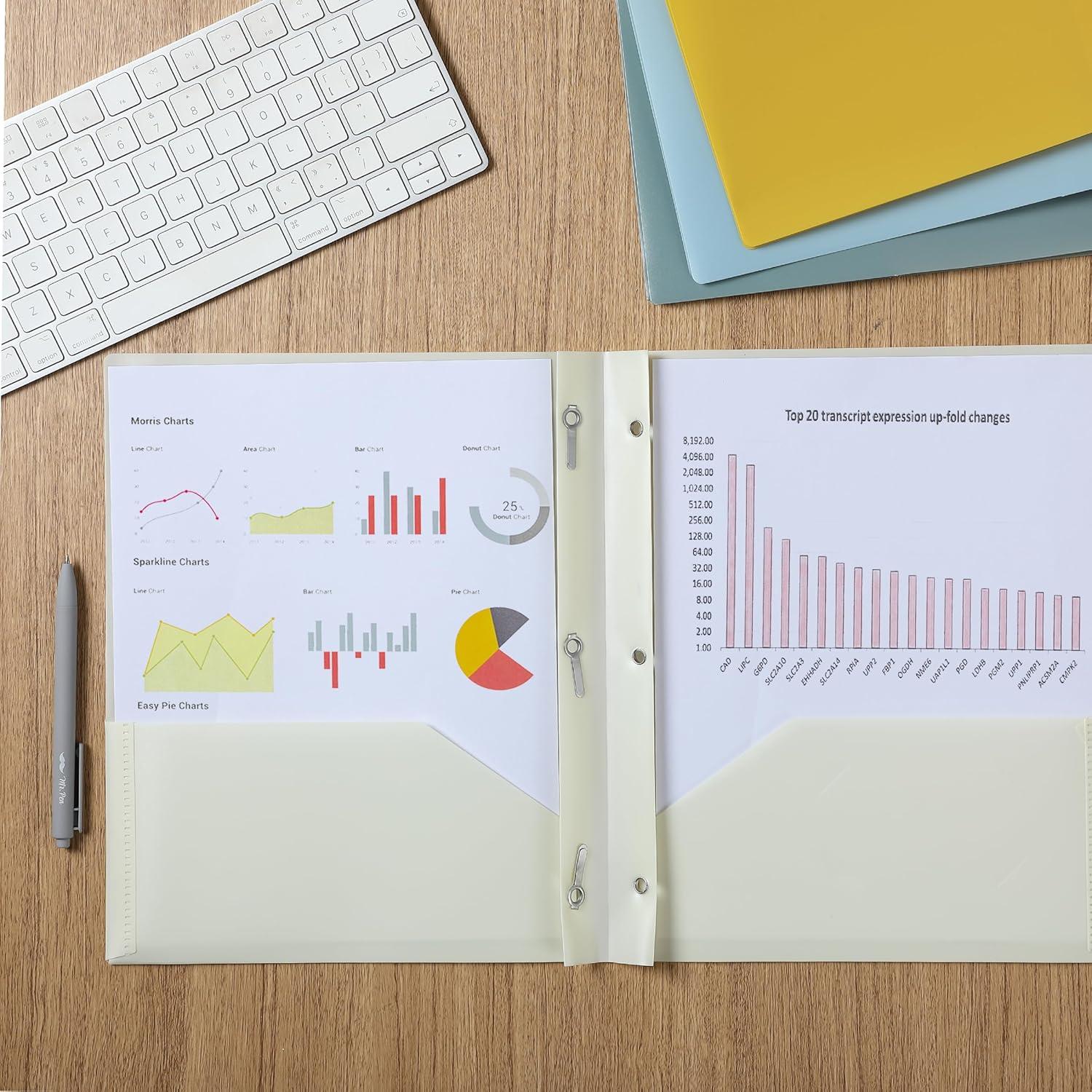• Each folder is sized for standard letter-size paper and includes two interior pockets and three sturdy prongs for securing loose and punched sheets.