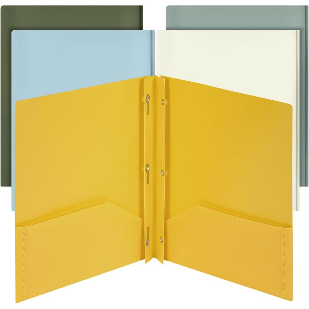 Each folder is sized for standard letter-size paper and includes two interior pockets and three sturdy prongs for securing loose and punched sheets.