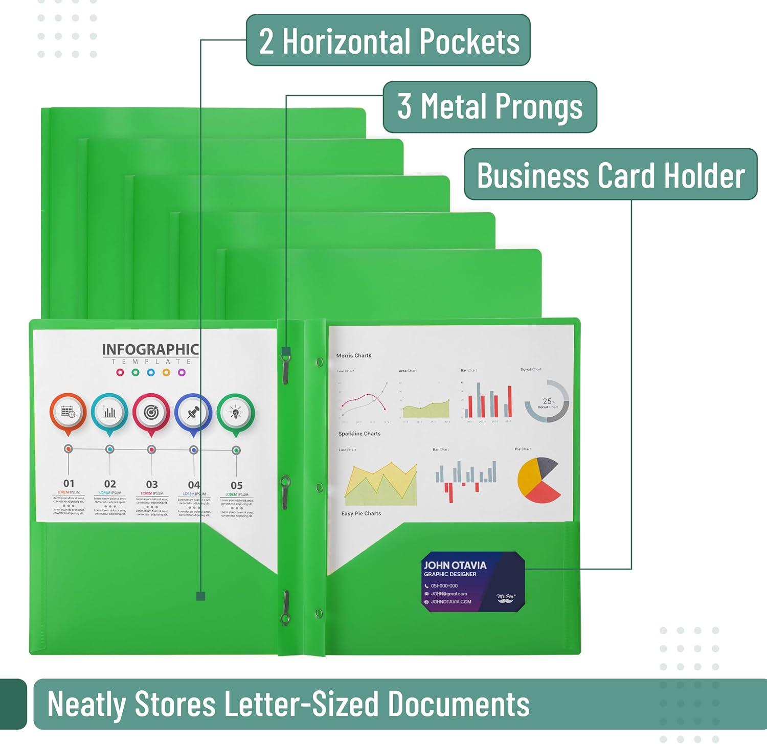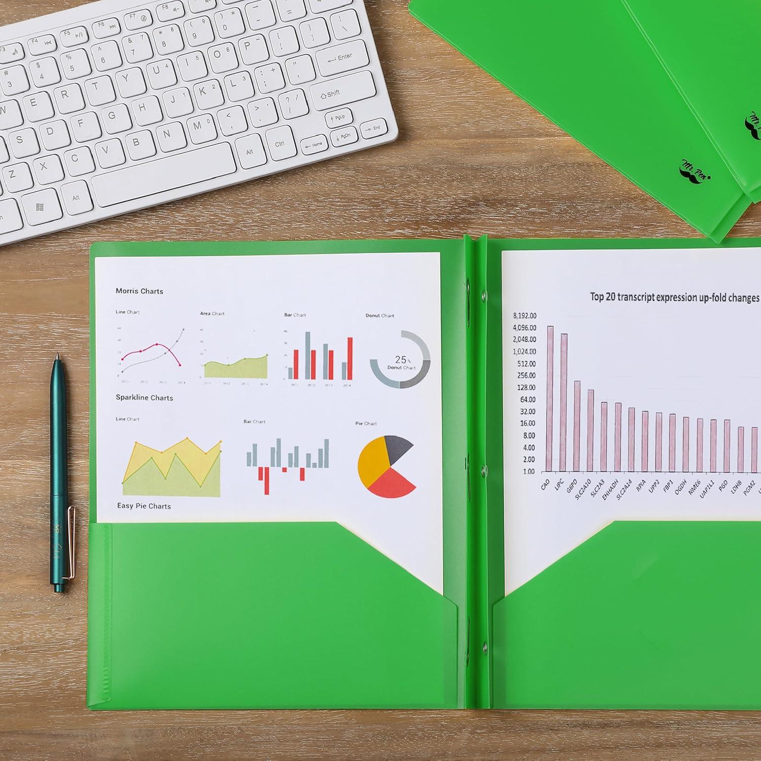 Mr. Pen- Plastic Folders with Pockets and Prongs, 15 Pack, Letter Size, Flexible Plastic Folders with Prongs(Green + Organizational Sheets)