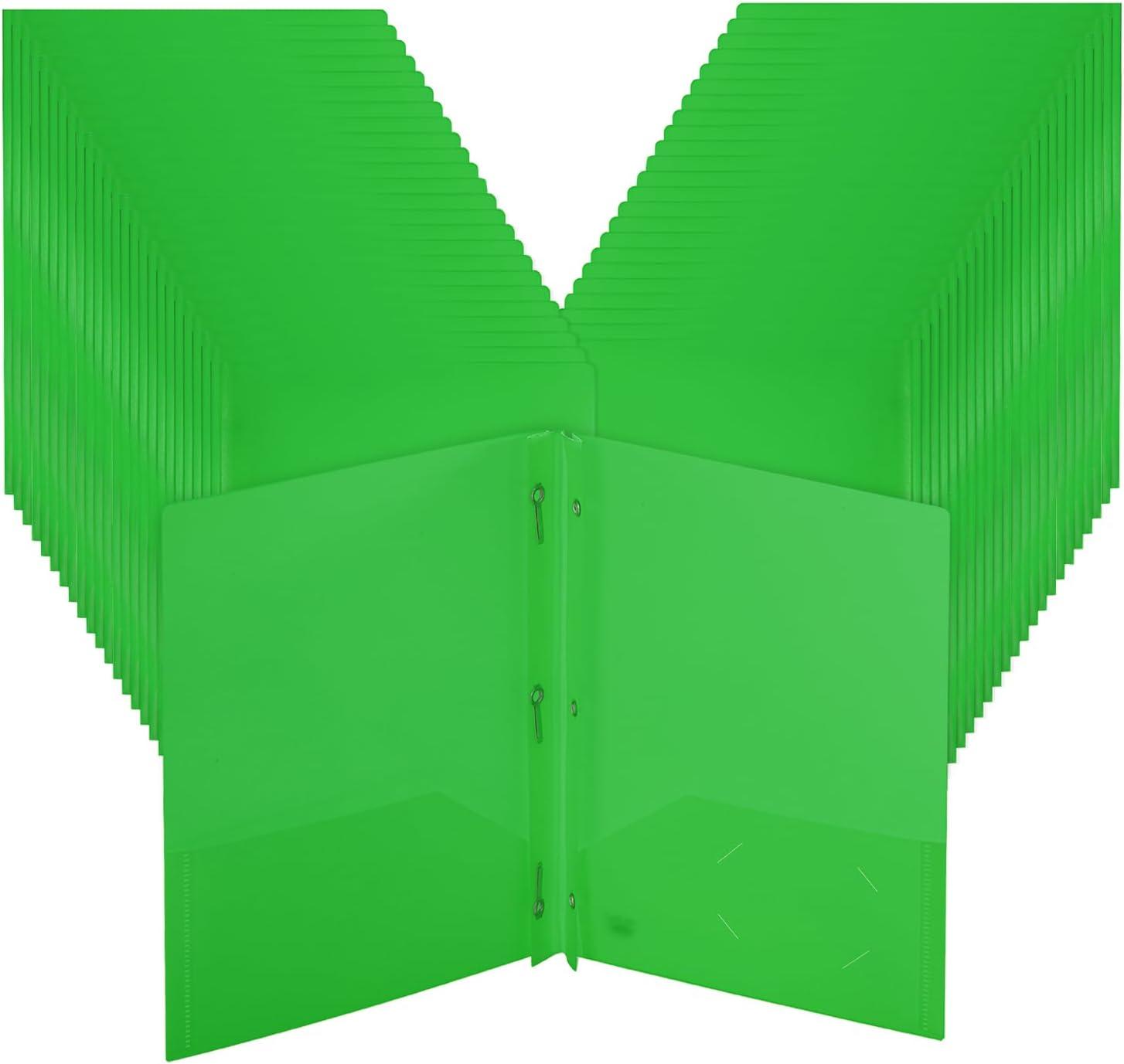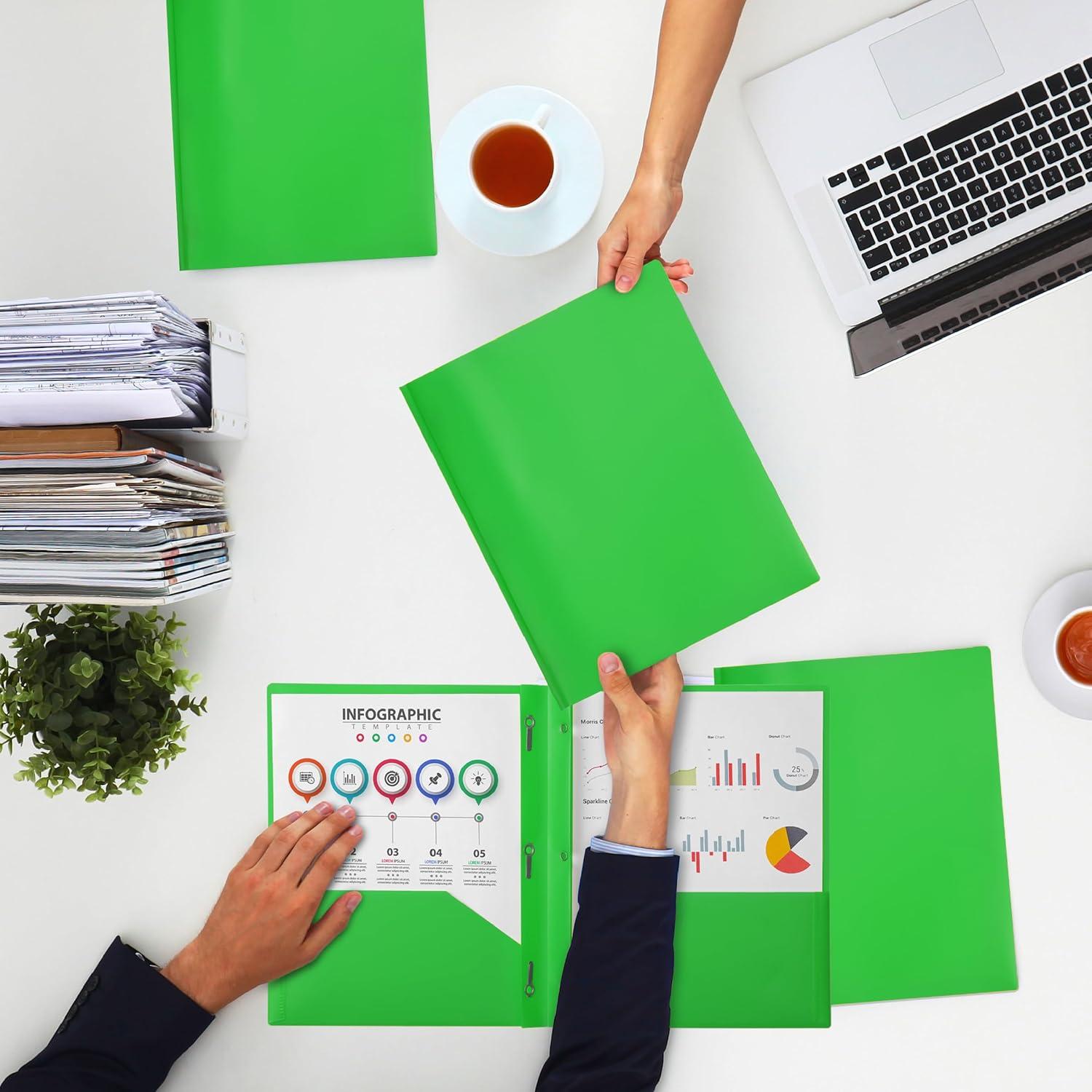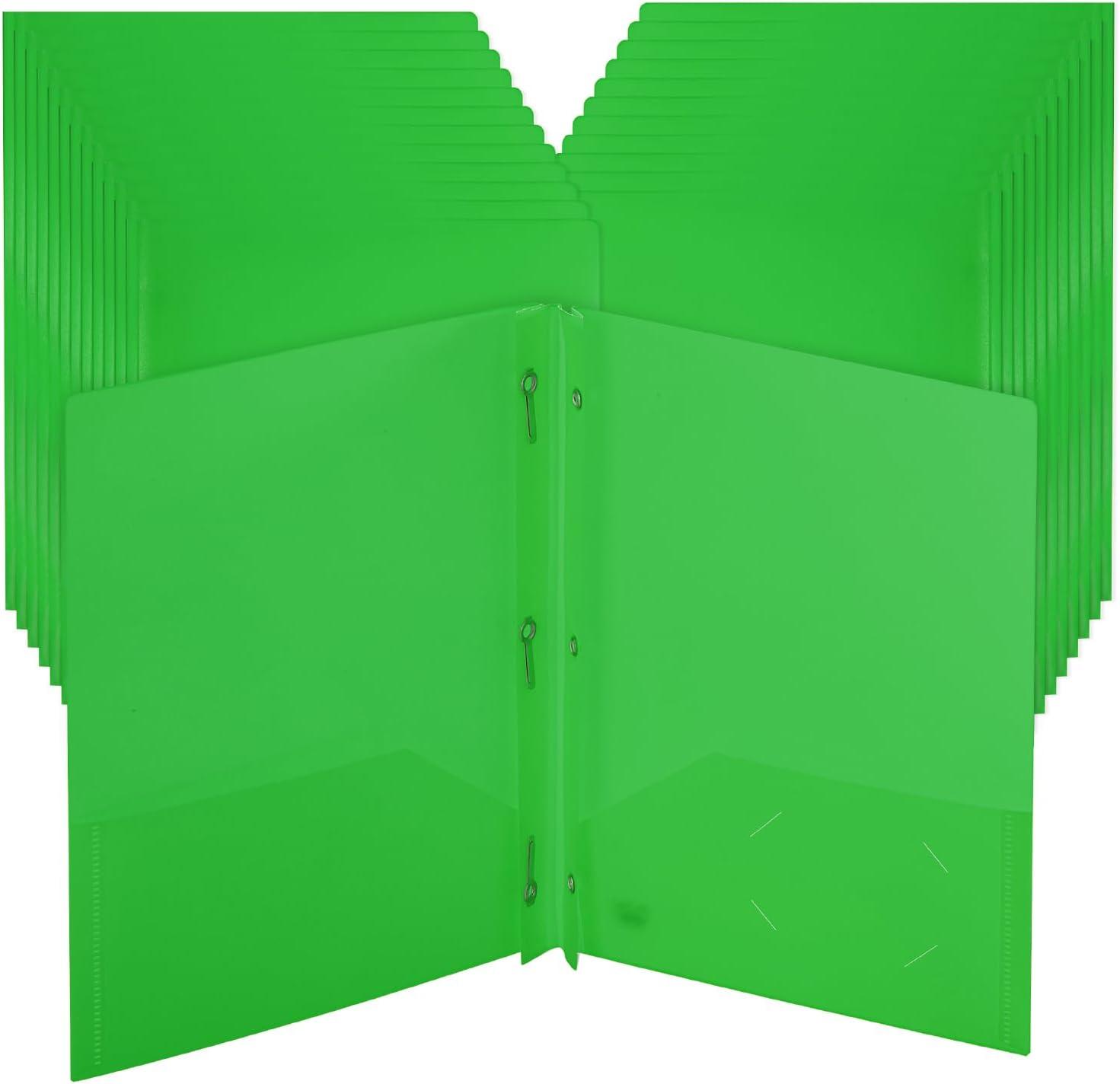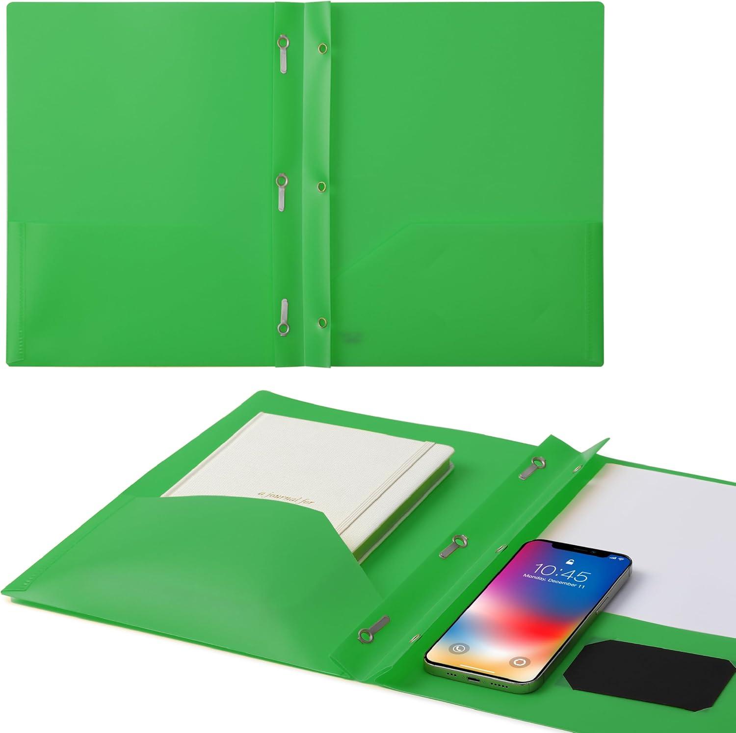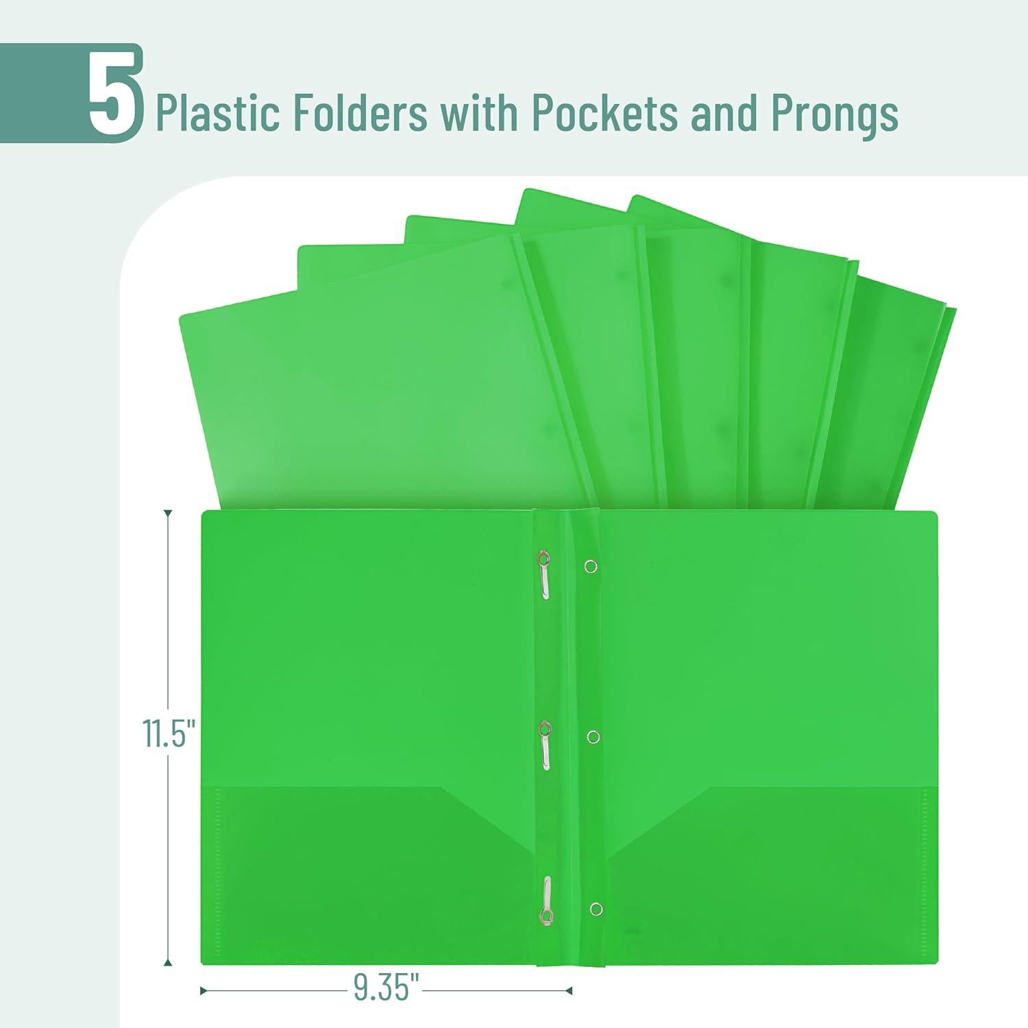 Mr. Pen- Plastic Folders with Pockets and Prongs, 15 Pack, Letter Size, Flexible Plastic Folders with Prongs(Green)