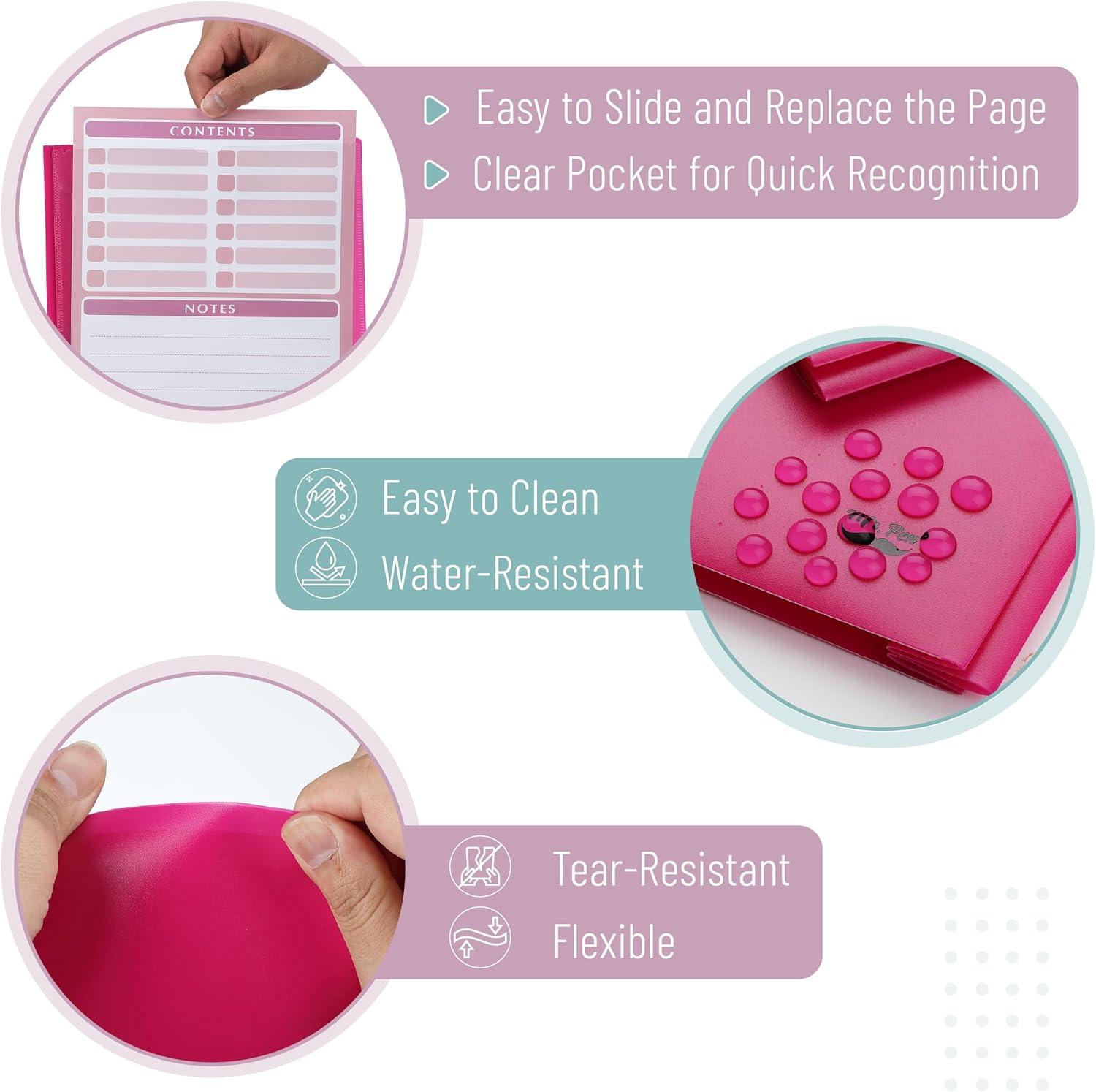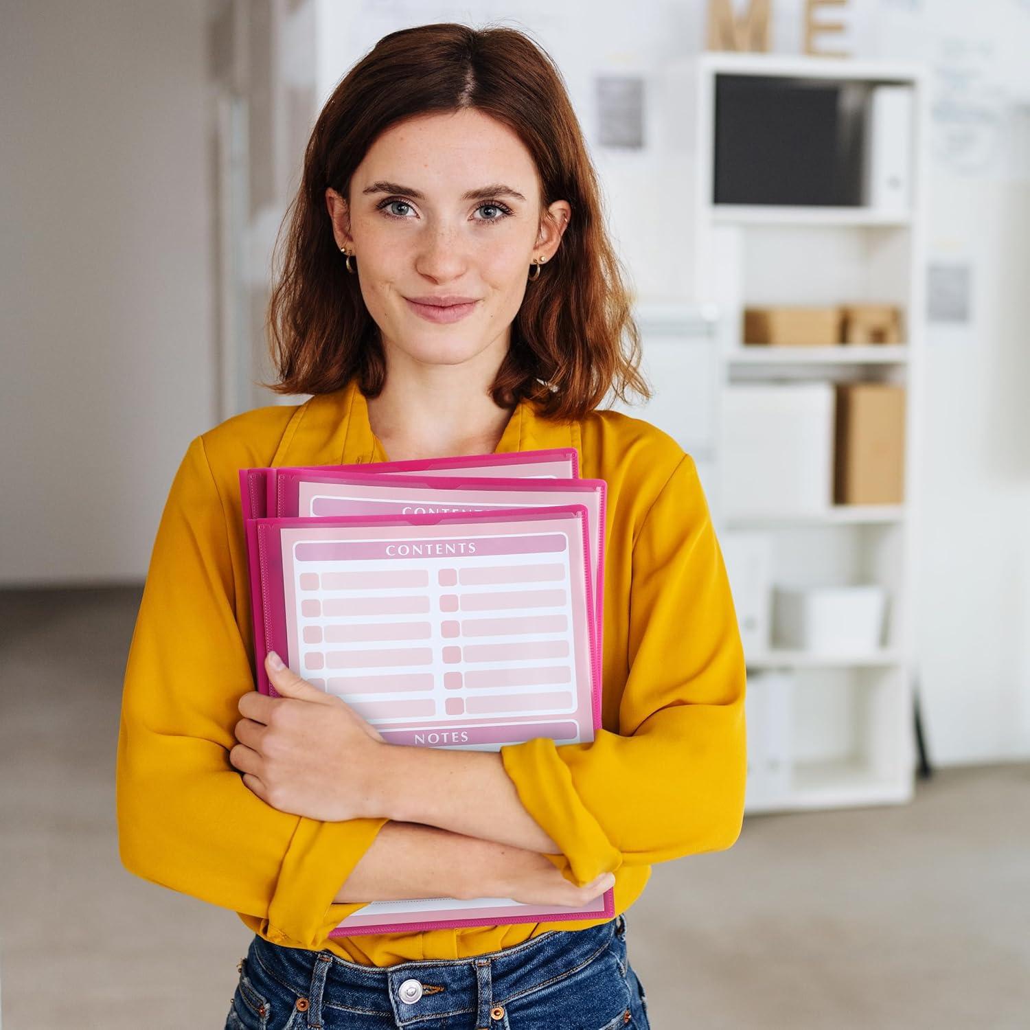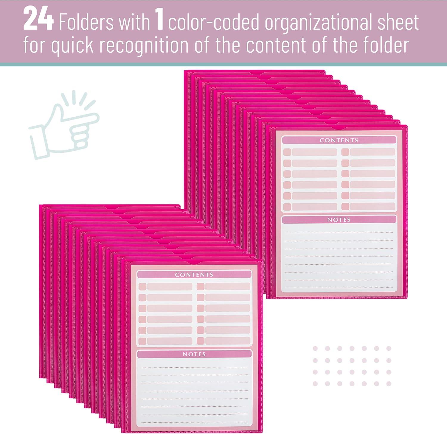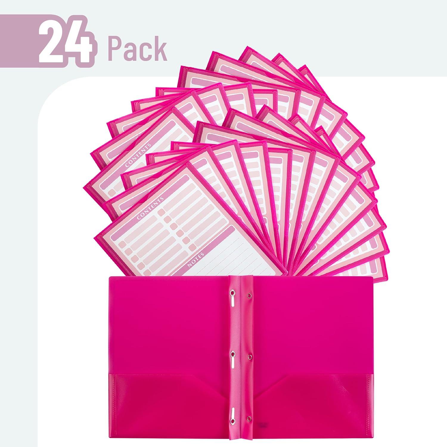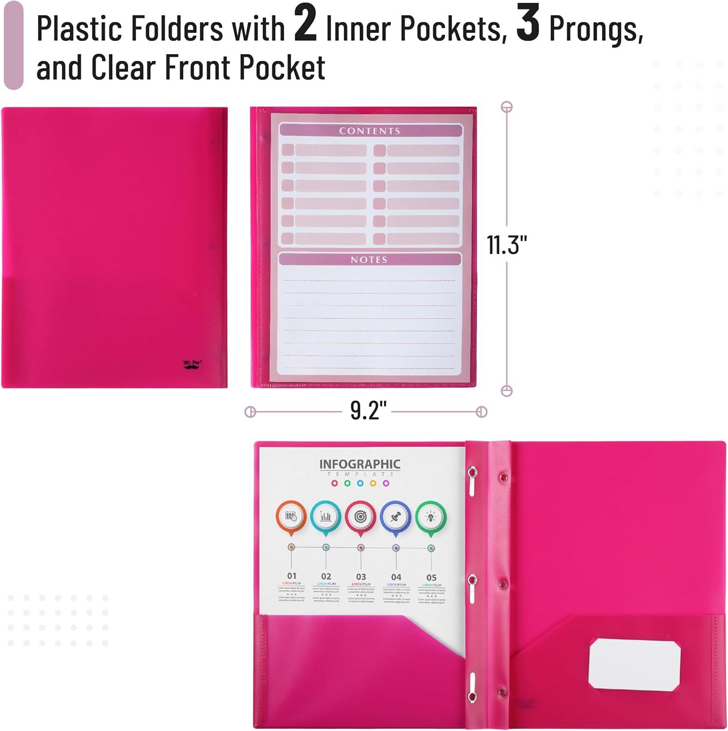 Mr. Pen- Plastic Folders with Pockets and Prongs, 15 Pack, Letter Size, Flexible Plastic Folders with Prongs(Magenta + Organizational Sheets)
