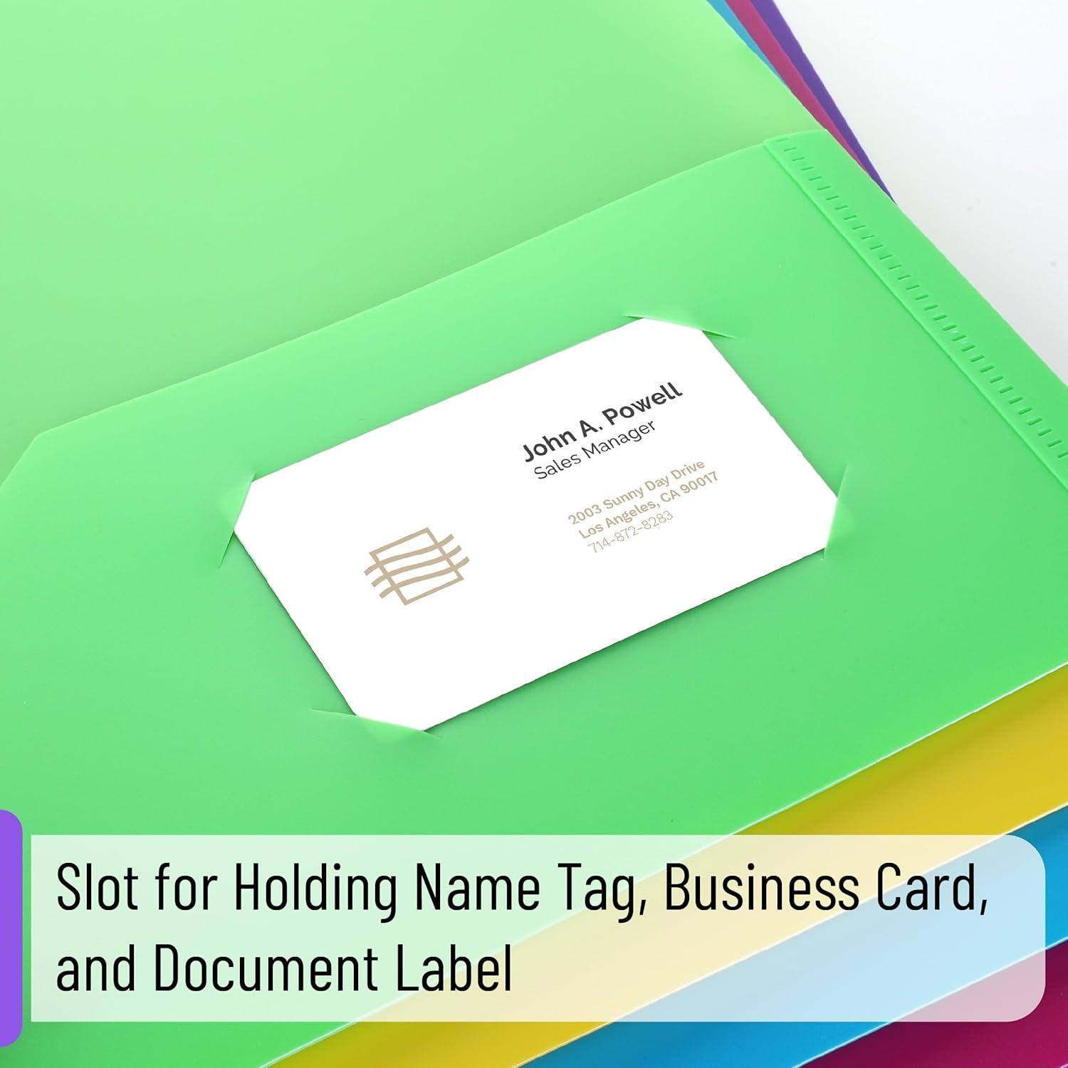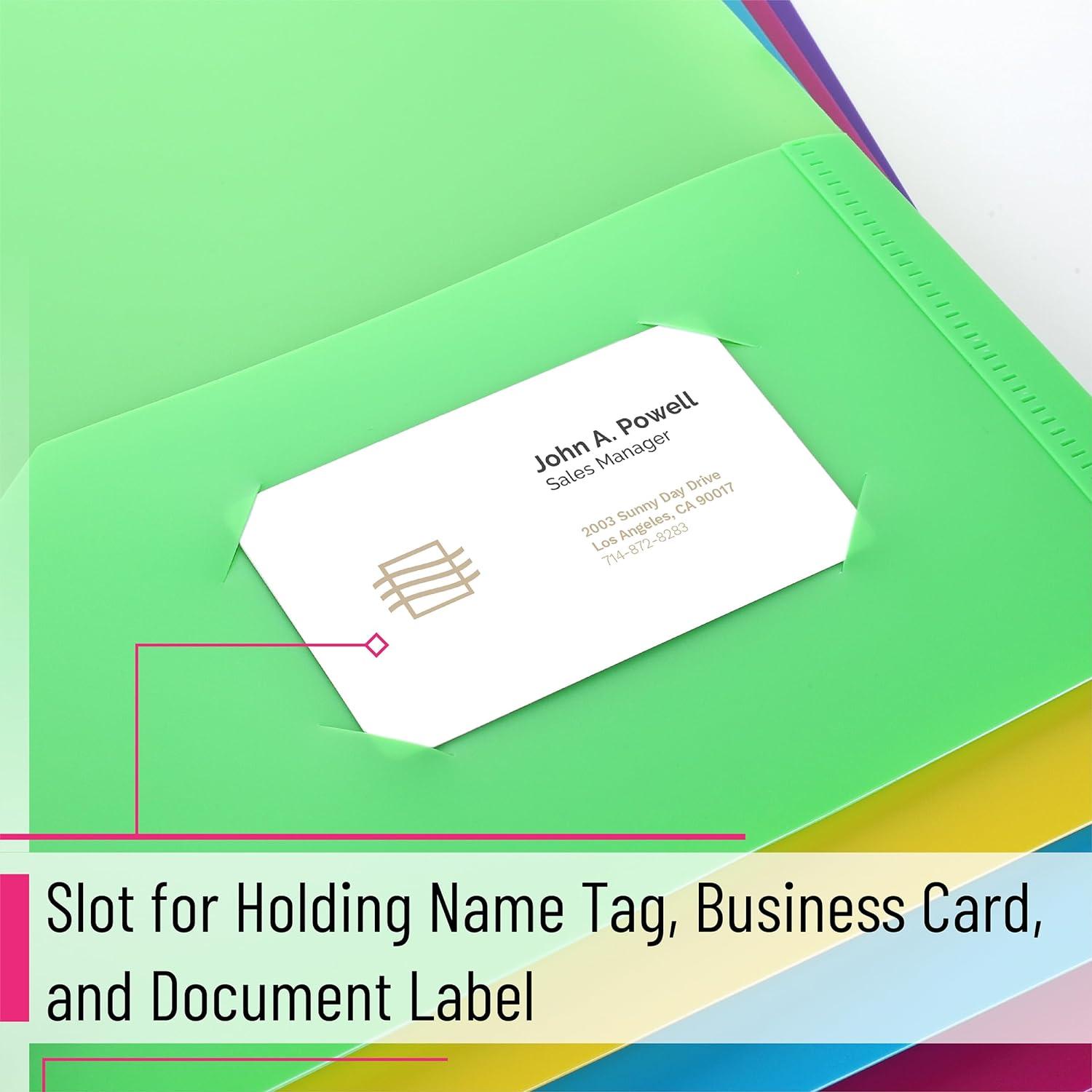 Each folder is made from flexible, durable plastic that resists wear and tear while keeping your papers neat and secure.