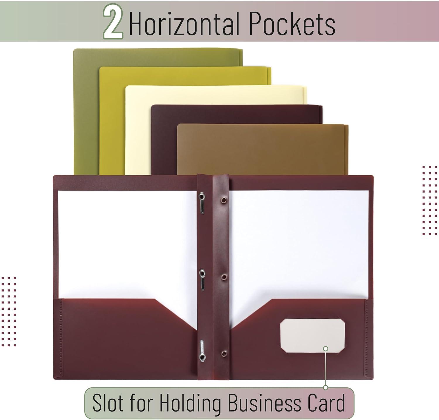Mr. Pen- Plastic Folders with Pockets and Prongs, 5 Pack, Letter Size, Green Shades, Flexible Plastic Folders with Prongs(Dark Earthy)