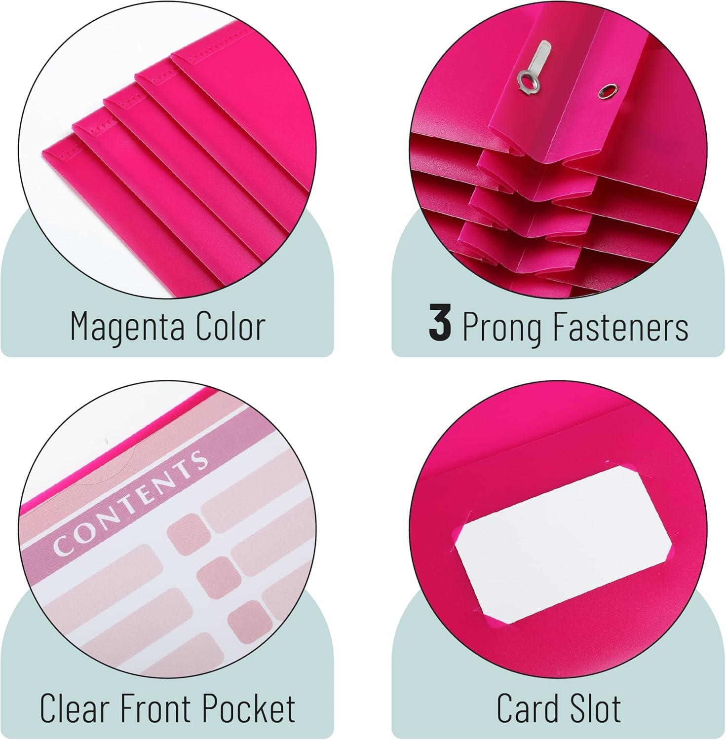 Mr. Pen- Plastic Folders with Pockets and Prongs, 5 Pack, Letter Size, Green Shades, Flexible Plastic Folders with Prongs(Magenta + Organizational Sheets)