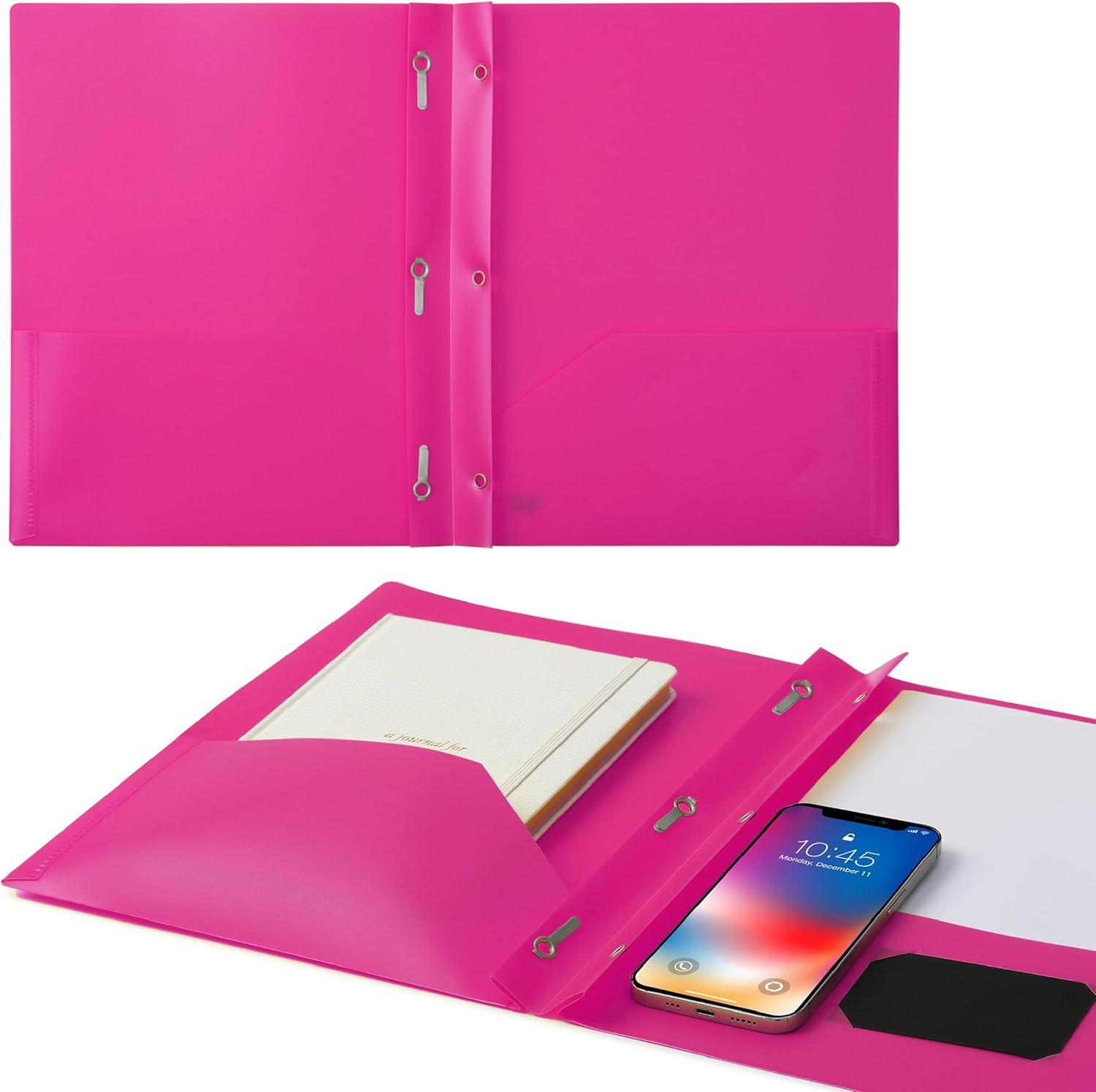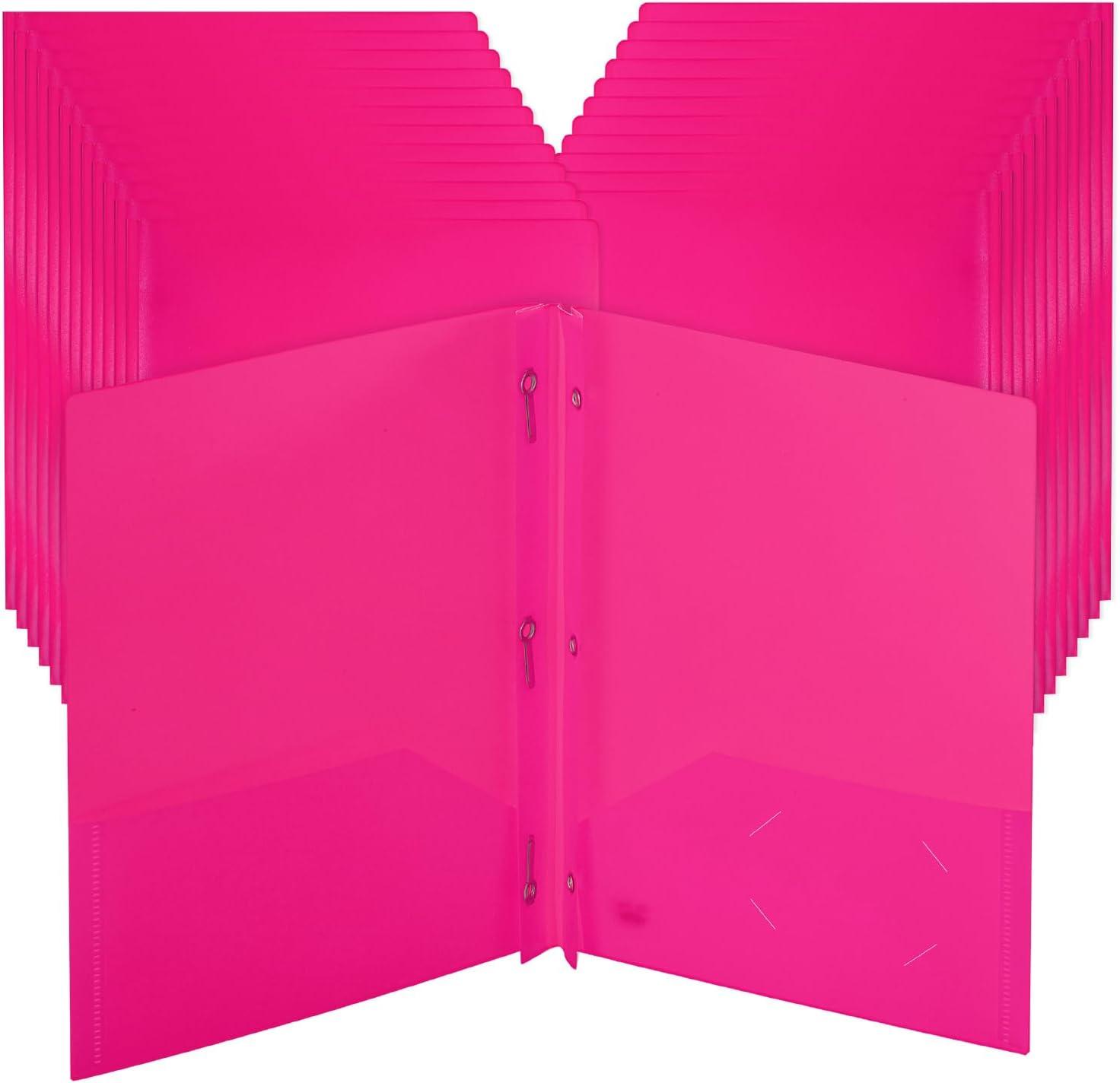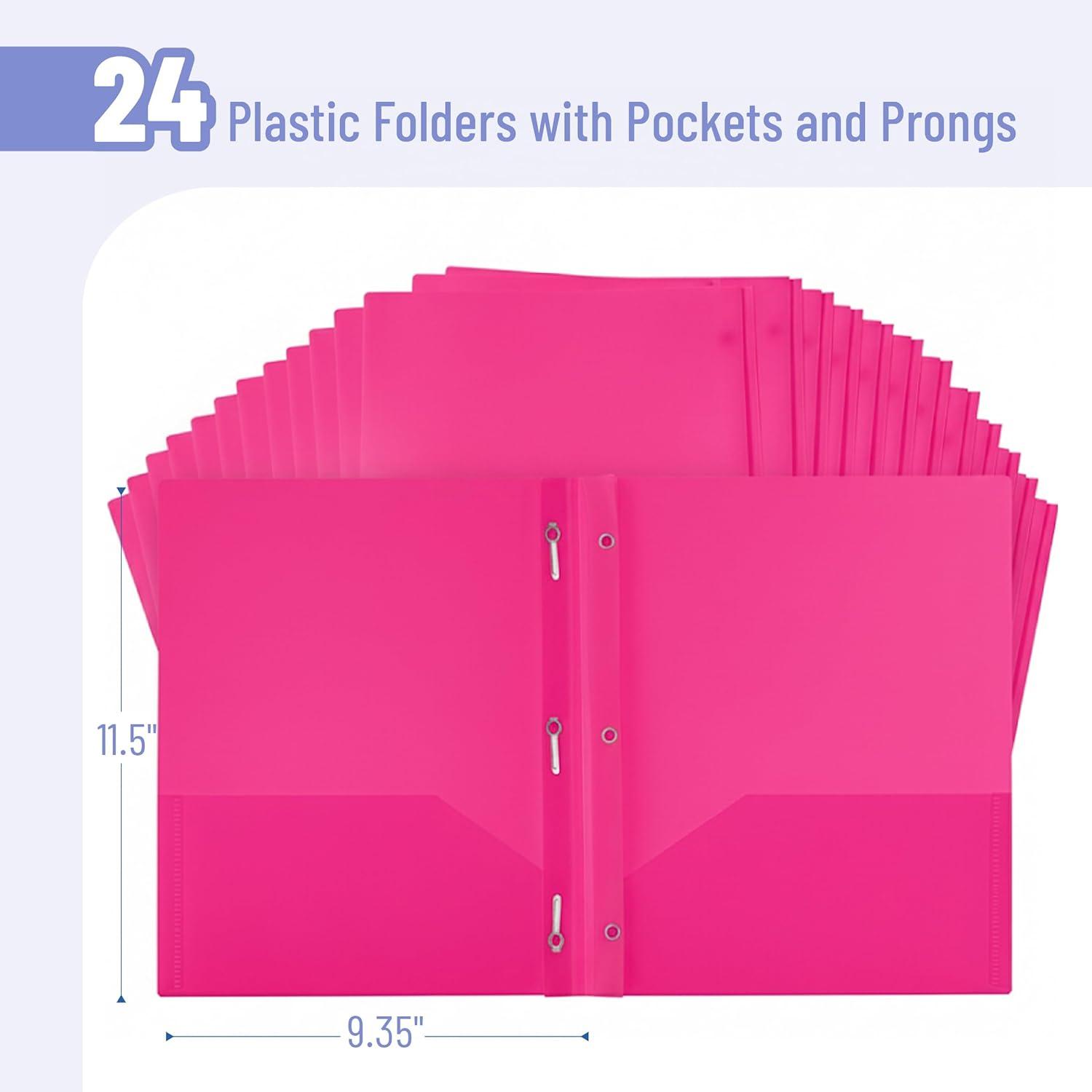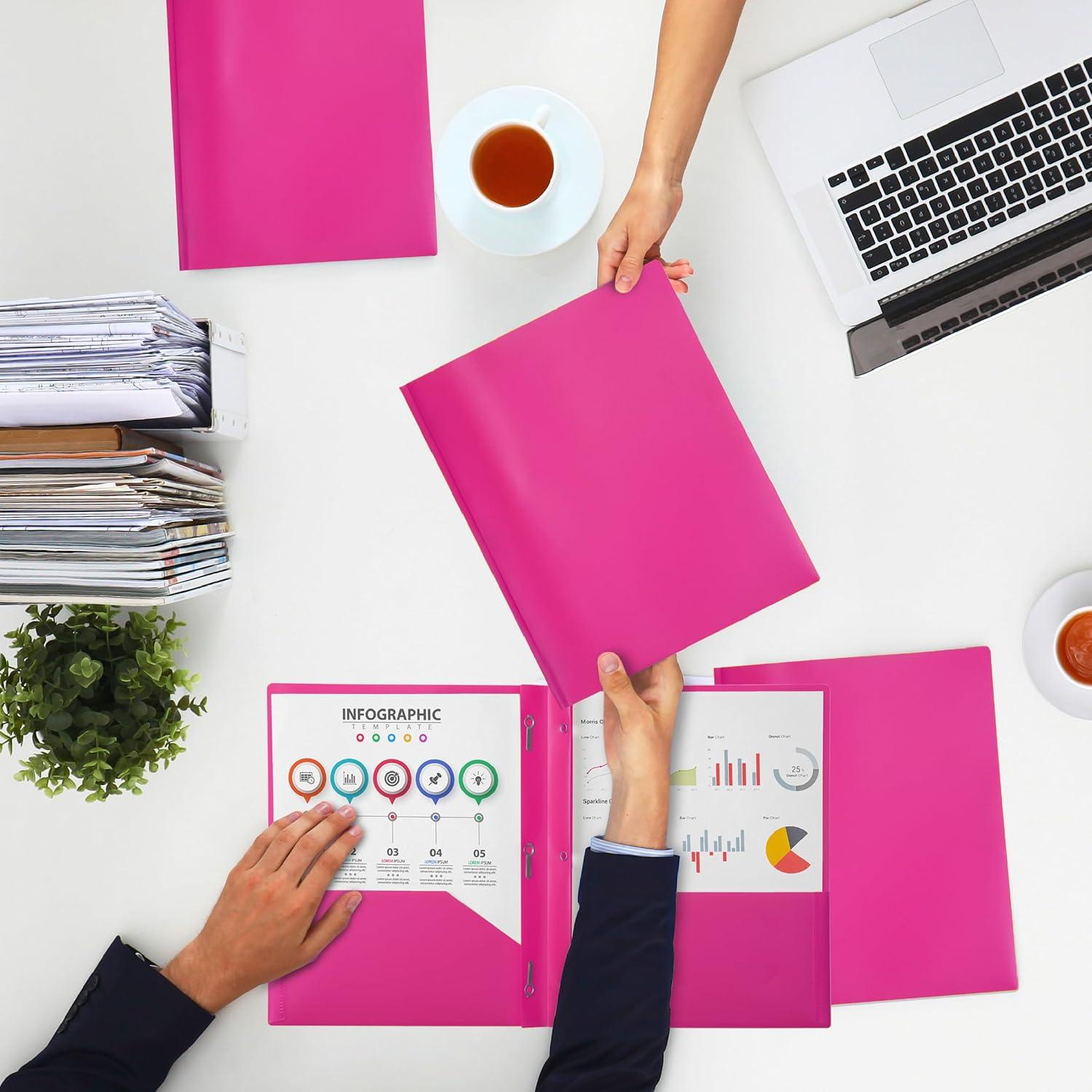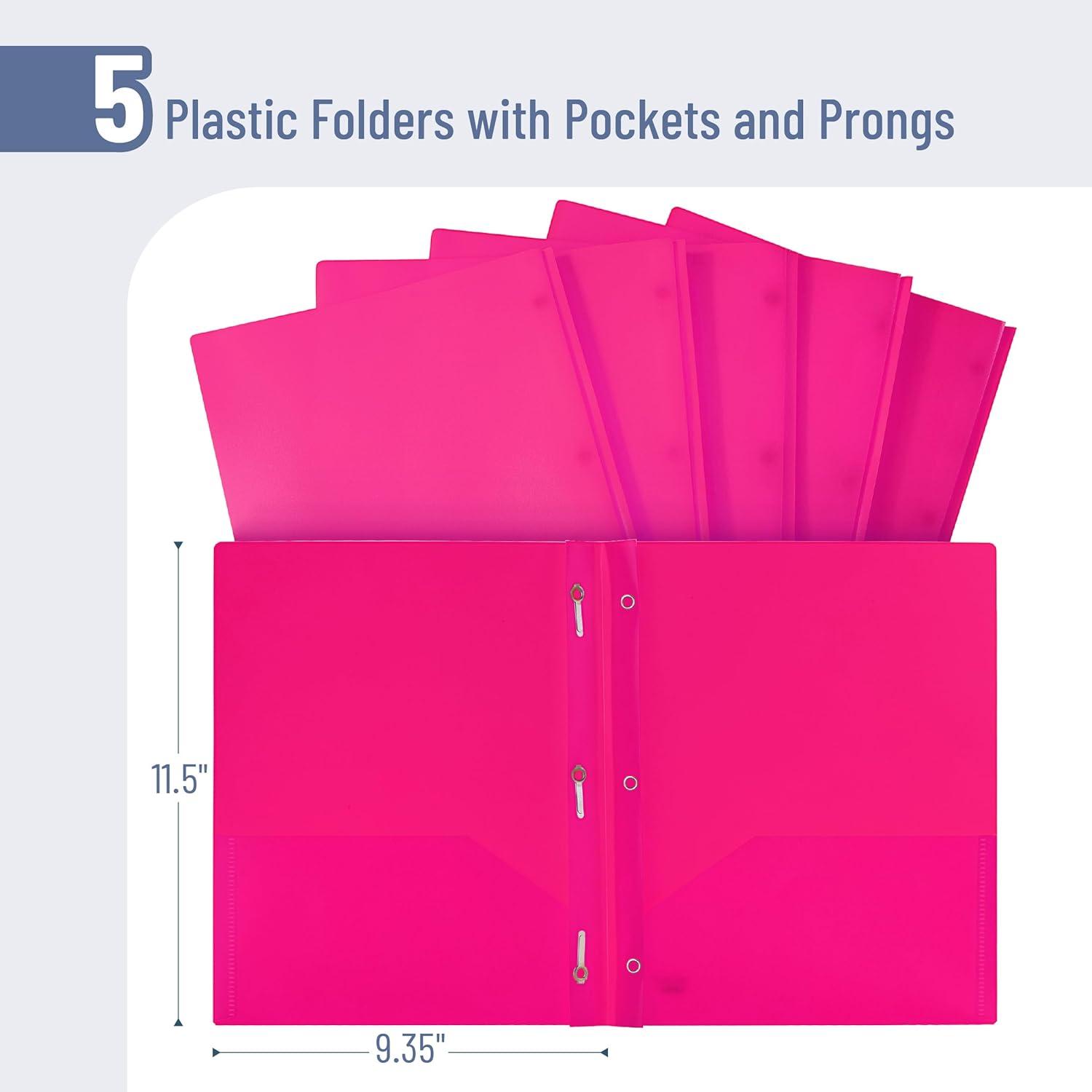 Mr. Pen- Plastic Folders with Pockets and Prongs, 5 Pack, Letter Size, Green Shades, Flexible Plastic Folders with Prongs(Pink)