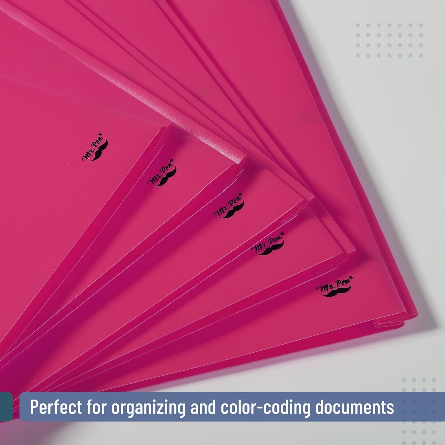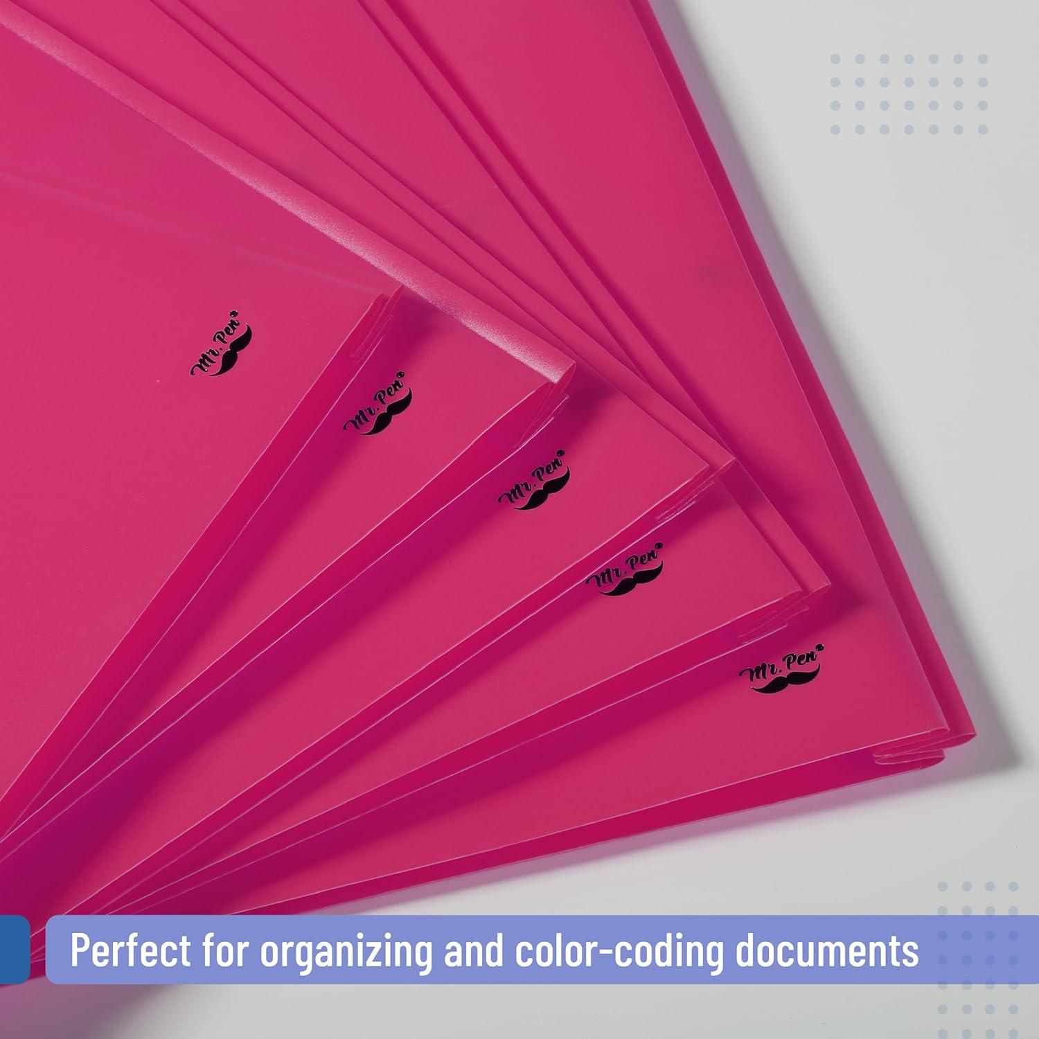 Mr. Pen plastic folders with pockets and prongs come in a 5-pack, offering a versatile and colorful solution for organizing documents at school, work, or home.