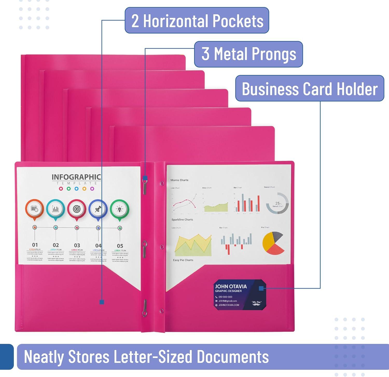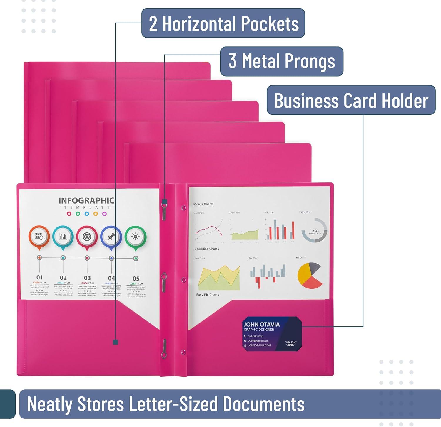 • Mr. Pen plastic folders with pockets and prongs come in a 5-pack, offering a versatile and colorful solution for organizing documents at school, work, or home.