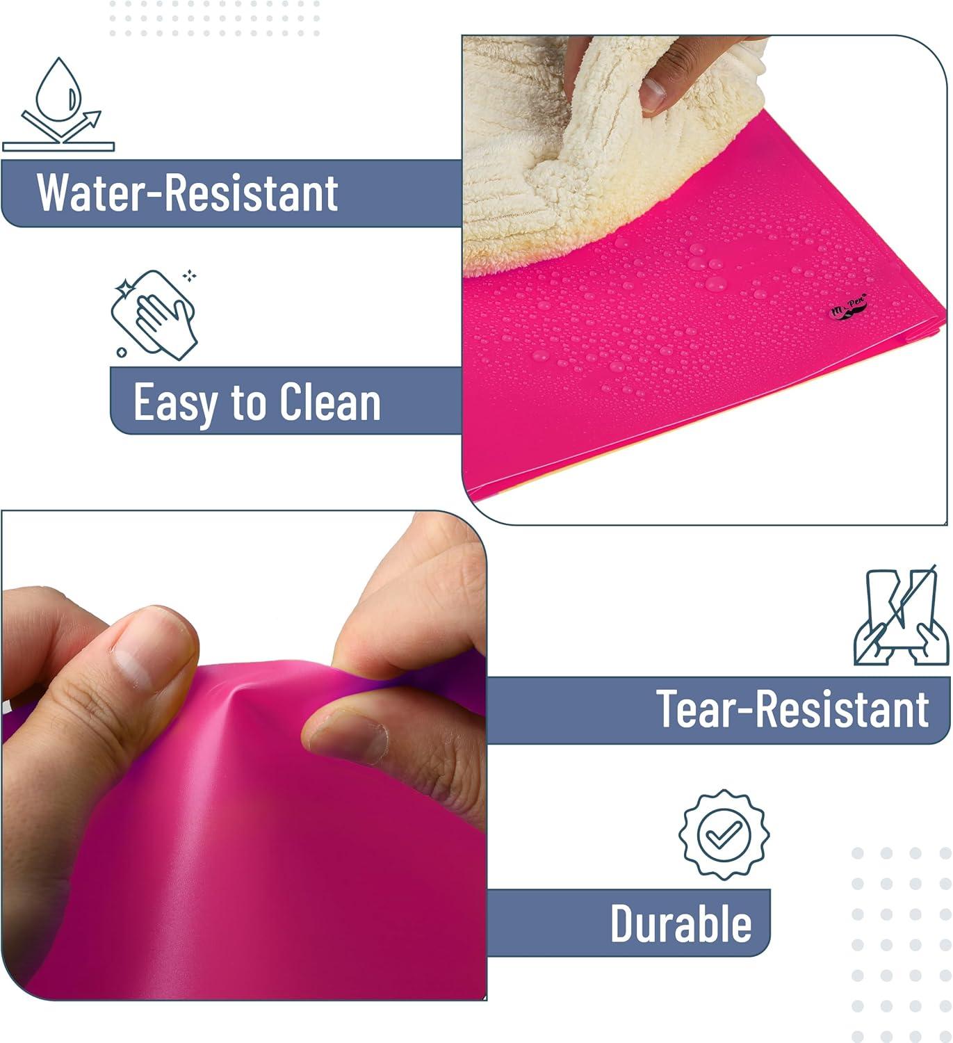 • Each folder is made from flexible, durable plastic that resists wear and tear while keeping your papers neat and secure.