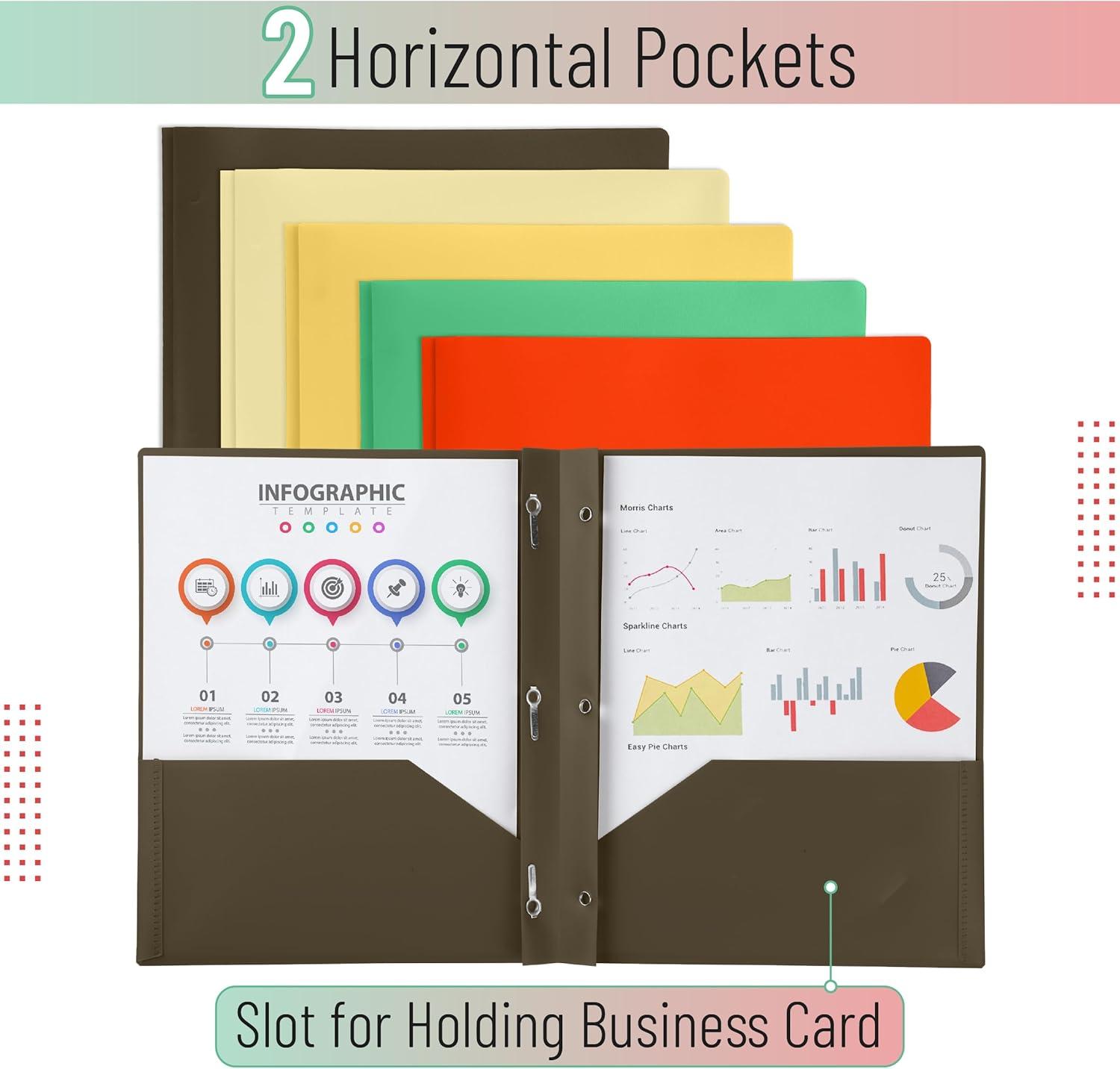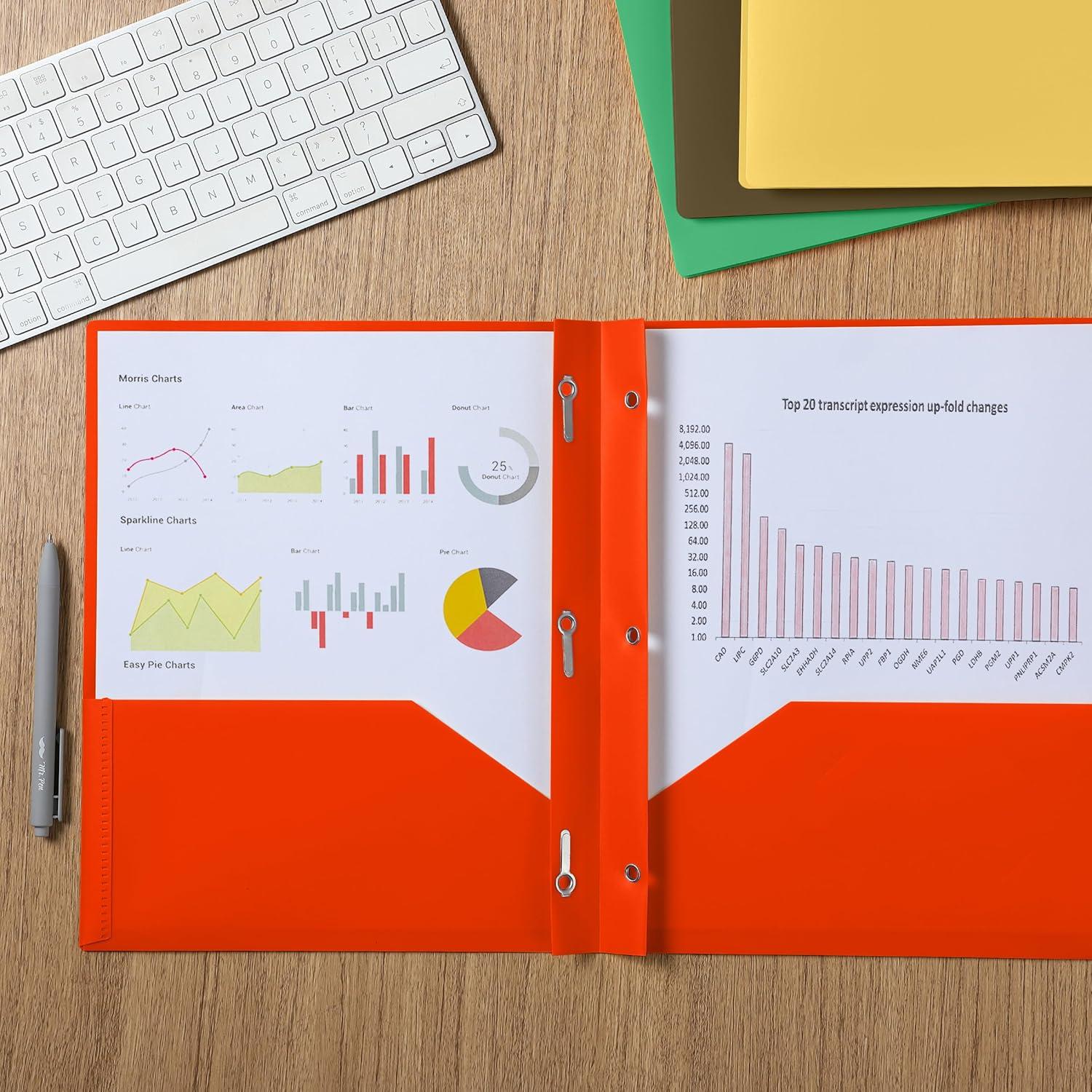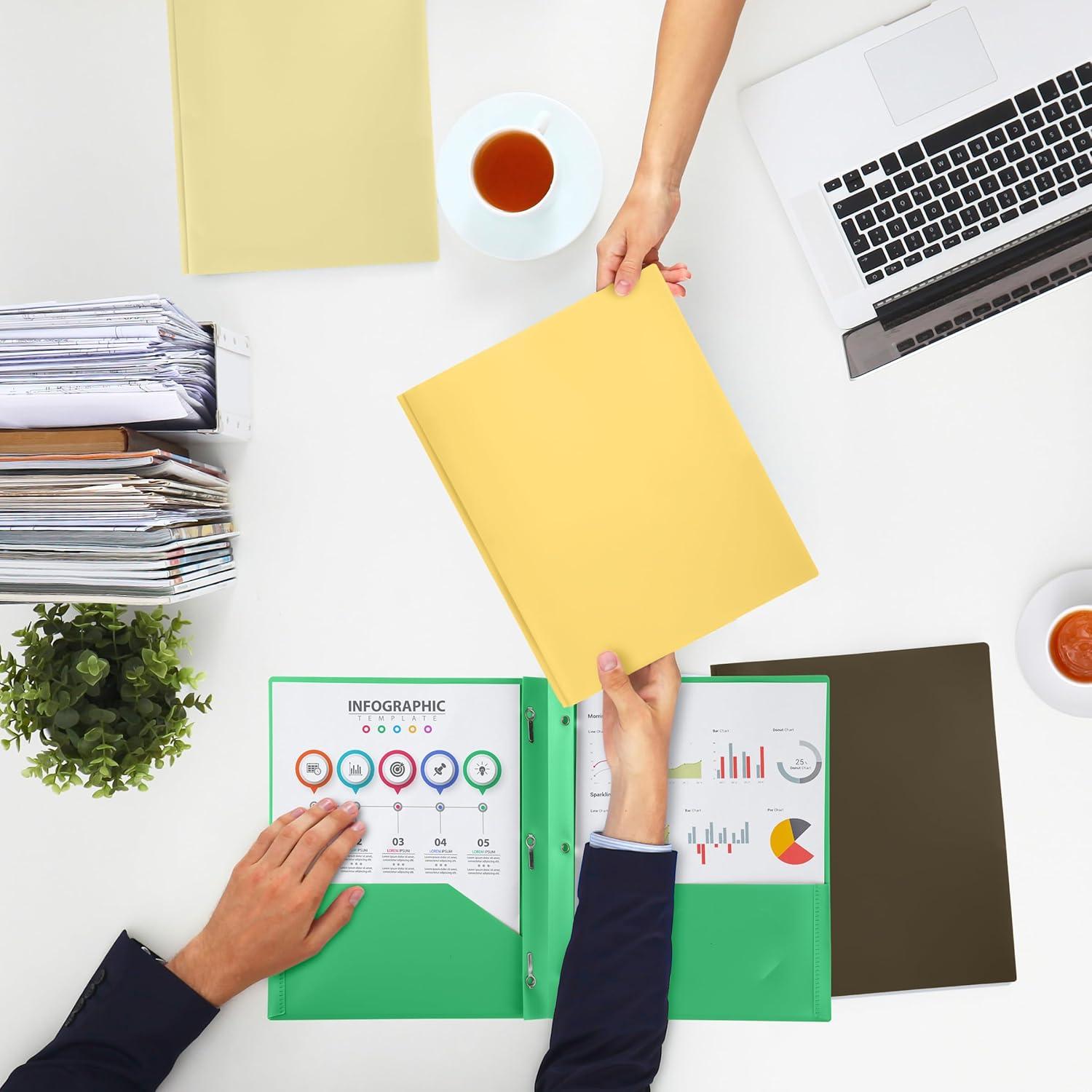 Each folder is made from flexible, durable plastic that resists wear and tear while keeping your papers neat and secure.