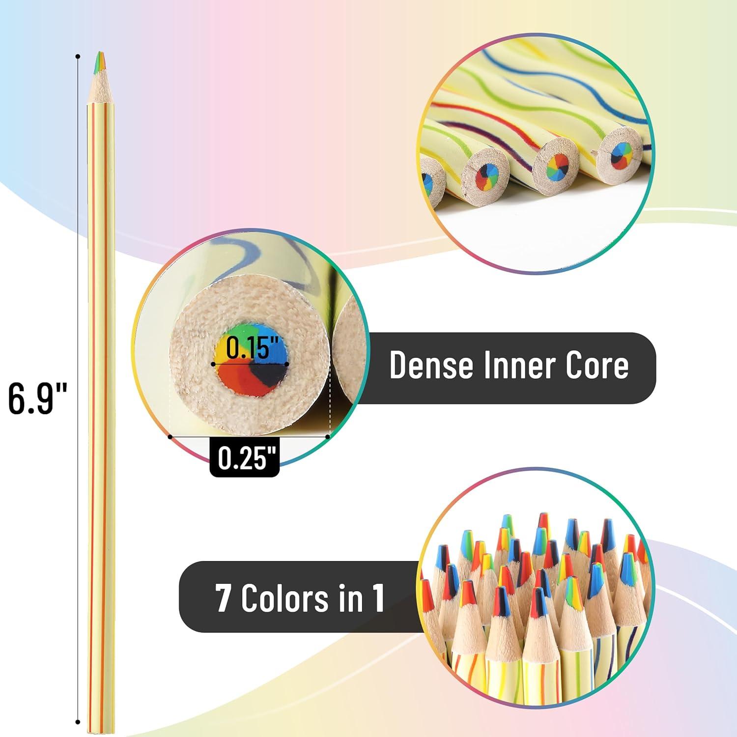 Each pencil features seven different colors, blending seamlessly together to create a beautiful rainbow effect with every stroke, making them perfect for drawing, coloring, or crafting.