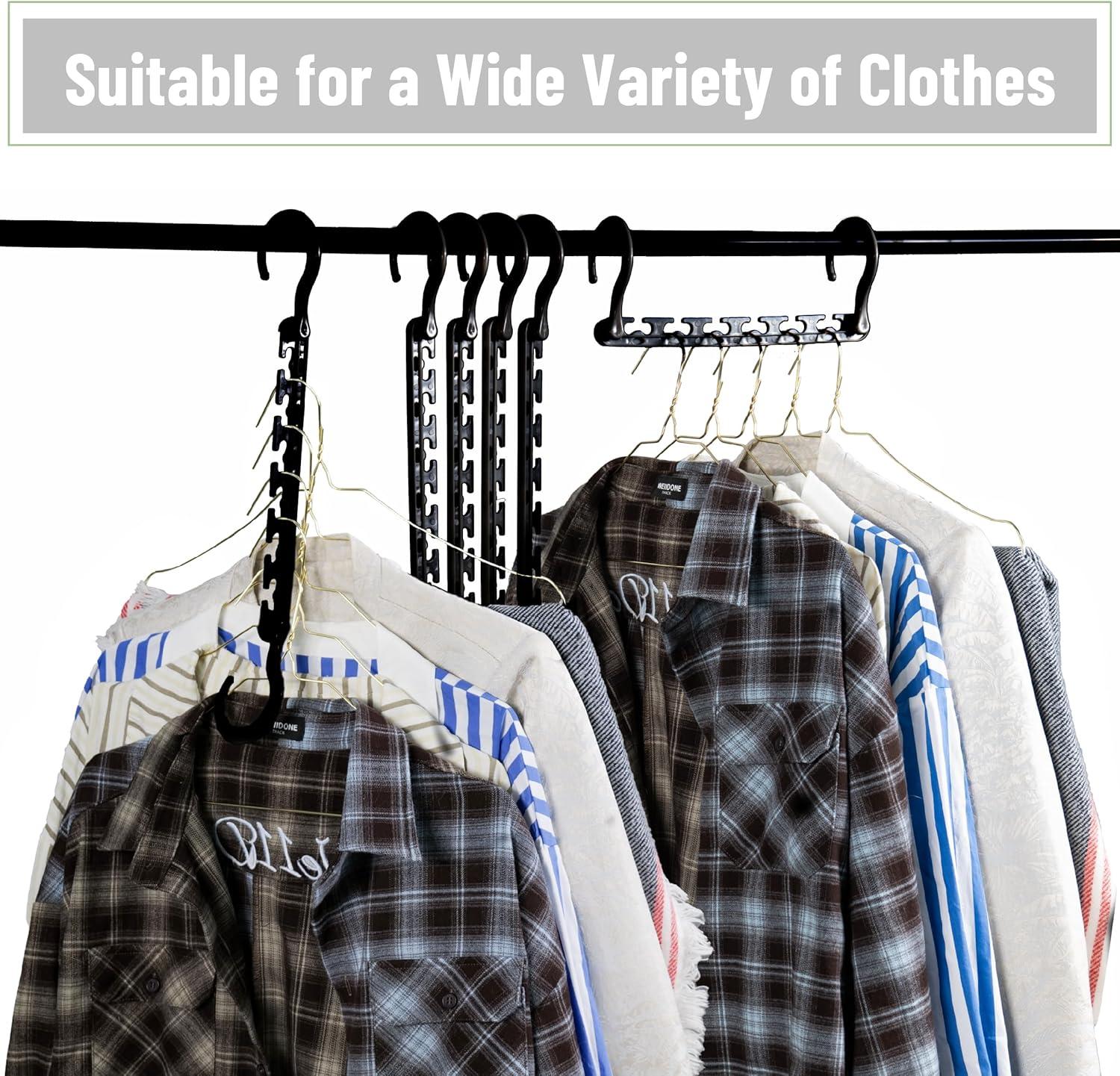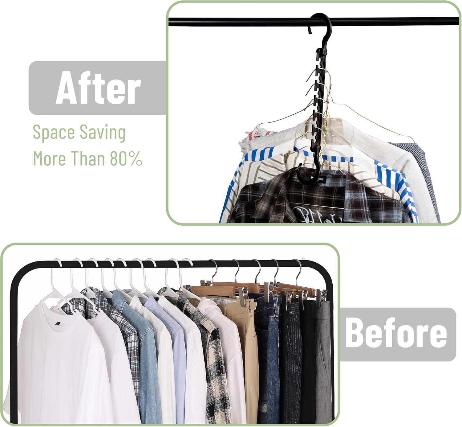 - By consolidating up to 6 items per hanger, these multi-clothes hangers instantly declutter your closet and streamline your daily dressing routine.