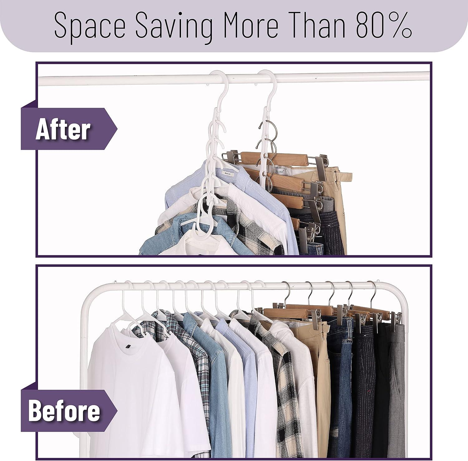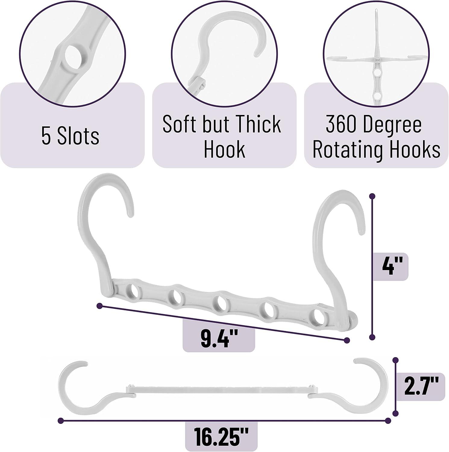 Each hanger includes 5 slots and 360° rotating hooks, allowing for versatile hanging options and easy access to your clothes.