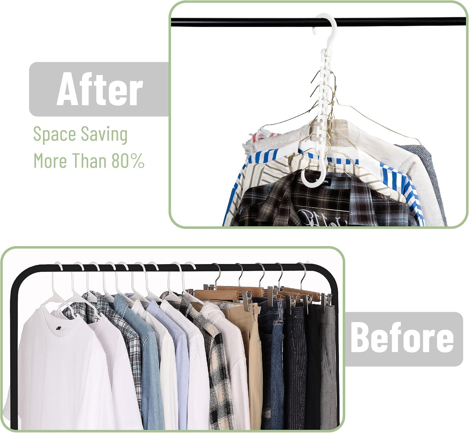- By consolidating up to 6 items per hanger, these multi-clothes hangers instantly declutter your closet and streamline your daily dressing routine.