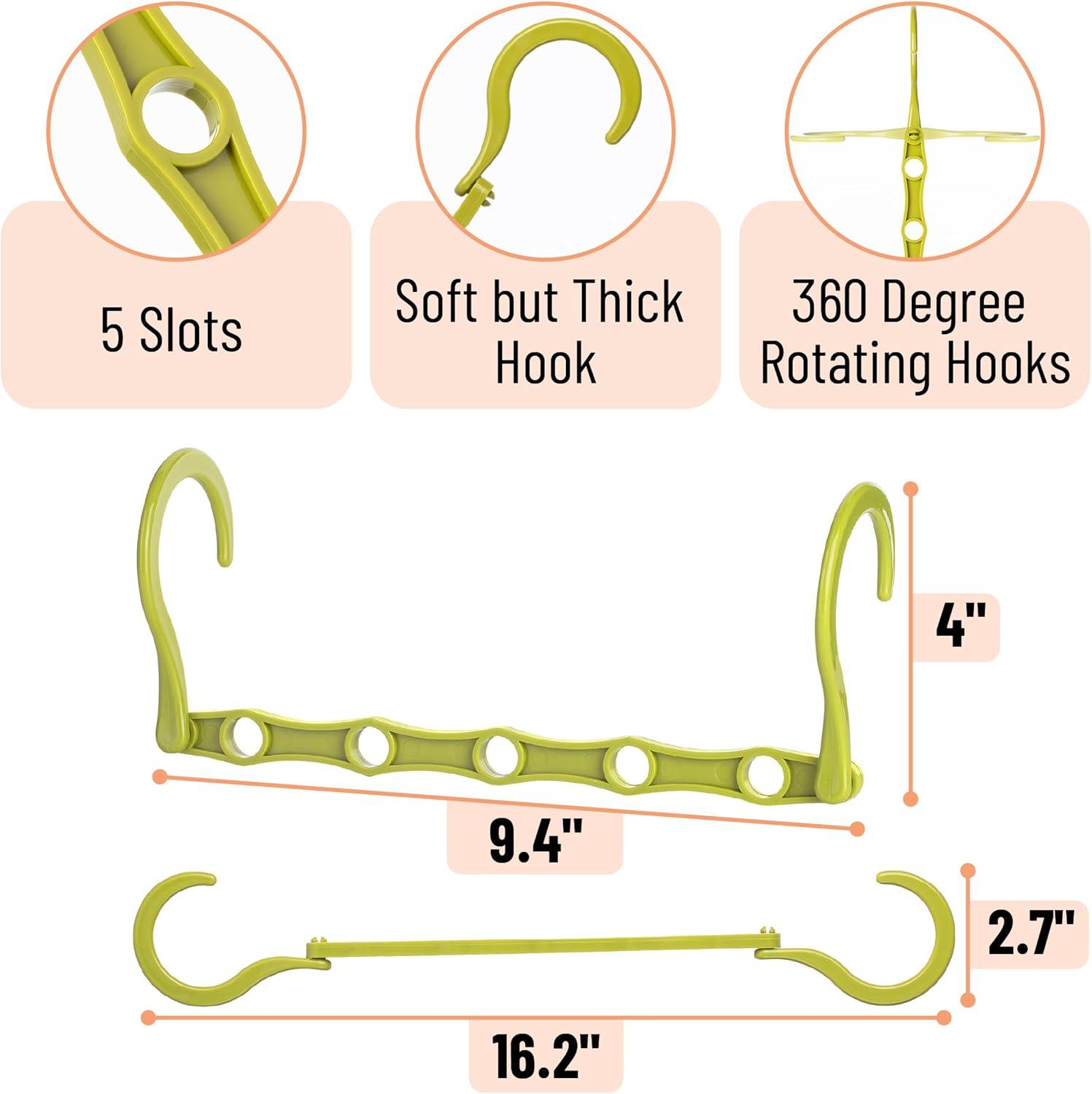 - Each hanger includes 5 slots and 360° rotating hooks, providing versatile hanging options and easy access to your clothes.