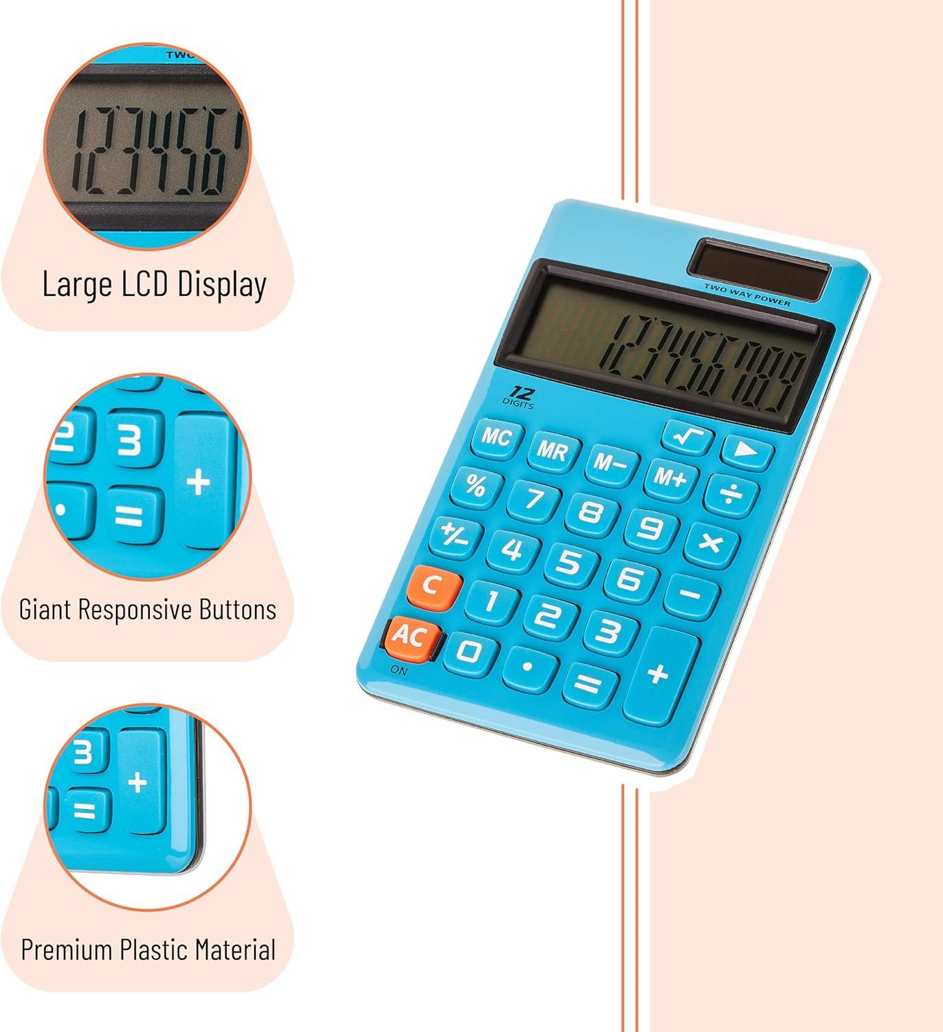 Mr. Pen- Standard Function Calculator, 12 Digits, Small Calculator, Pastel Green Solar Calculators(Blue)