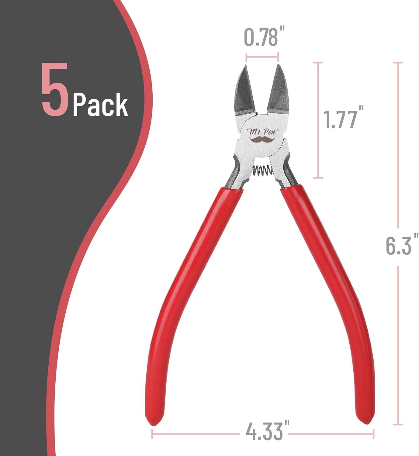 Mr. Pen- Wire Cutter, 6 Inch, 5 Pack, Green & Ivory Ergonomic Rubber Handle, Spring Loaded, Wire Cutters for Crafting, Snips, Flush Cut Pliers, Diagonal Cutting Pliers(Red Spring-loaded)